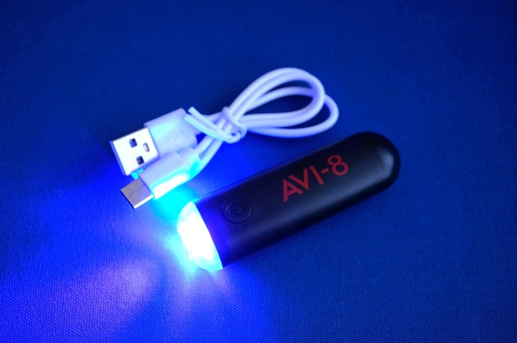 暗所にて、付属するUVライトで文字盤を照らすと特殊インクで描かれた、