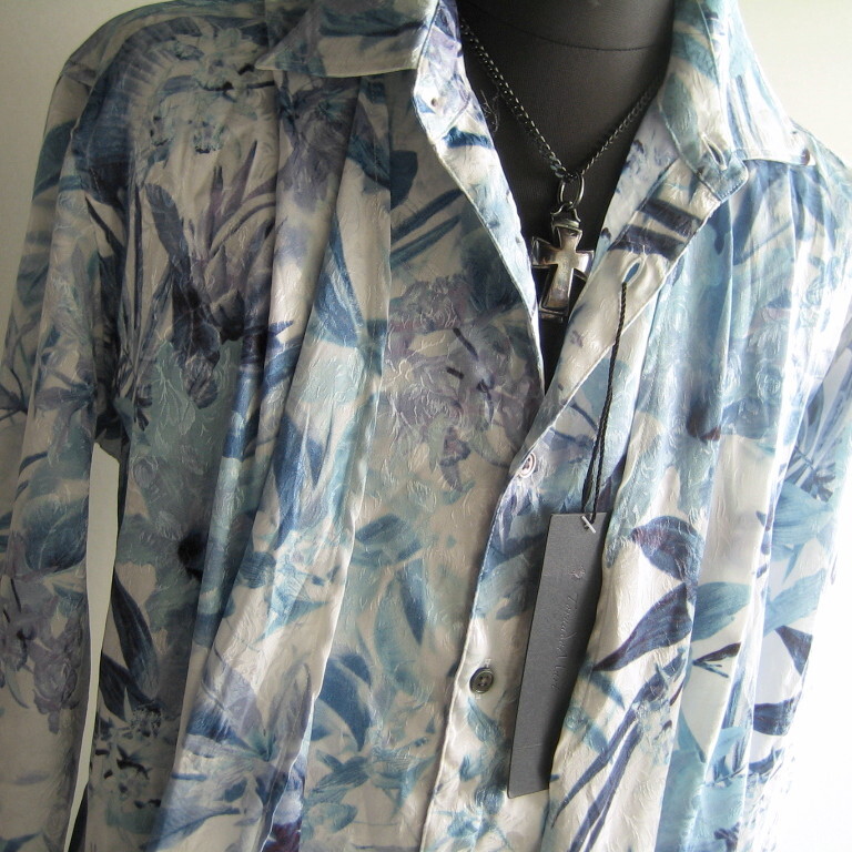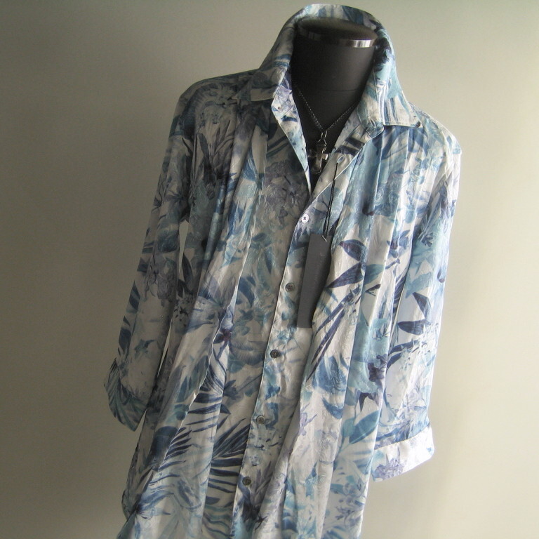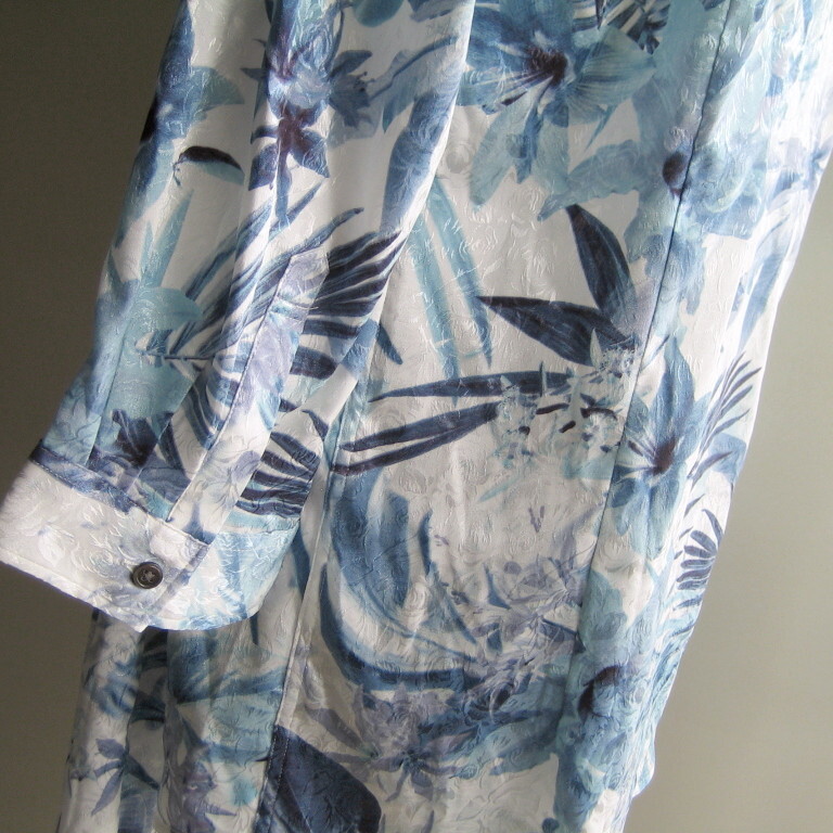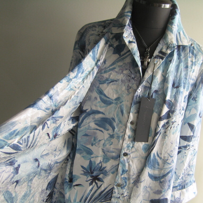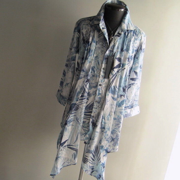 2.8万 新品 L トルネードマート オアシスボタニカルプリントドレープシャツ7分袖 ブルー 送料無料 サンプル 366