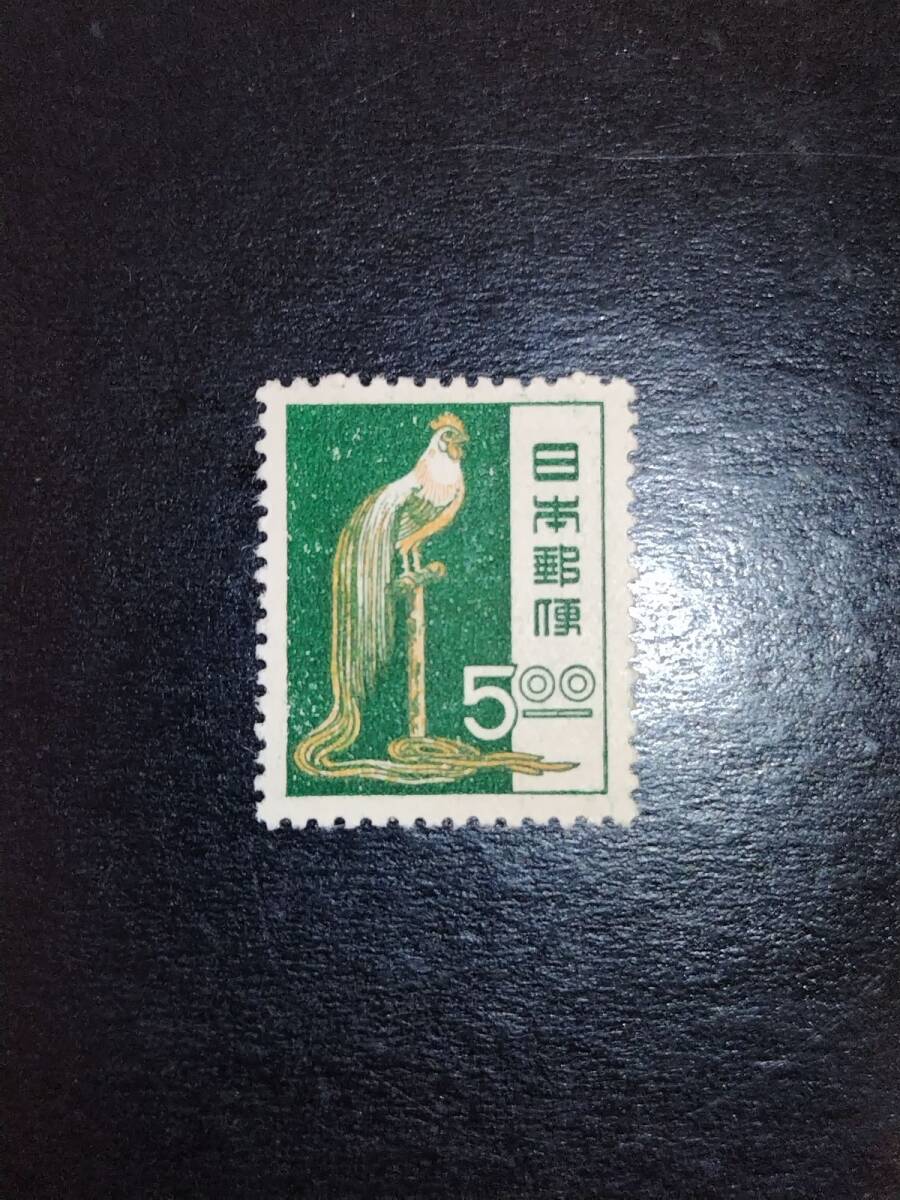 収集家の処分品!昭和すかしなし尾長どり5円濃緑NH極美品・のりツヤ最高です。