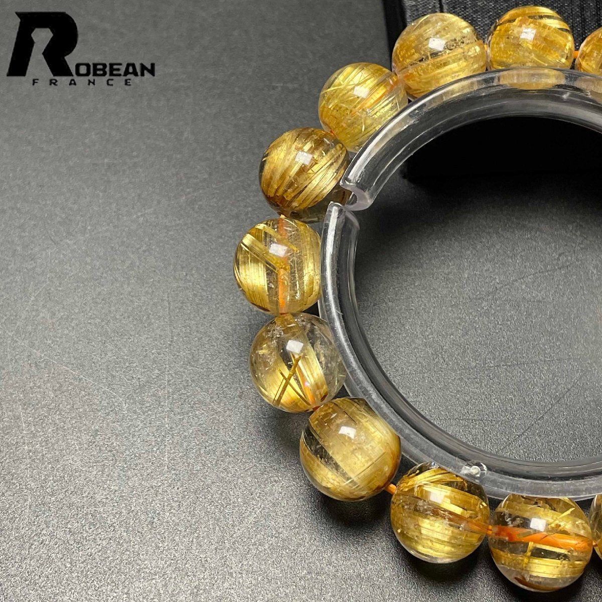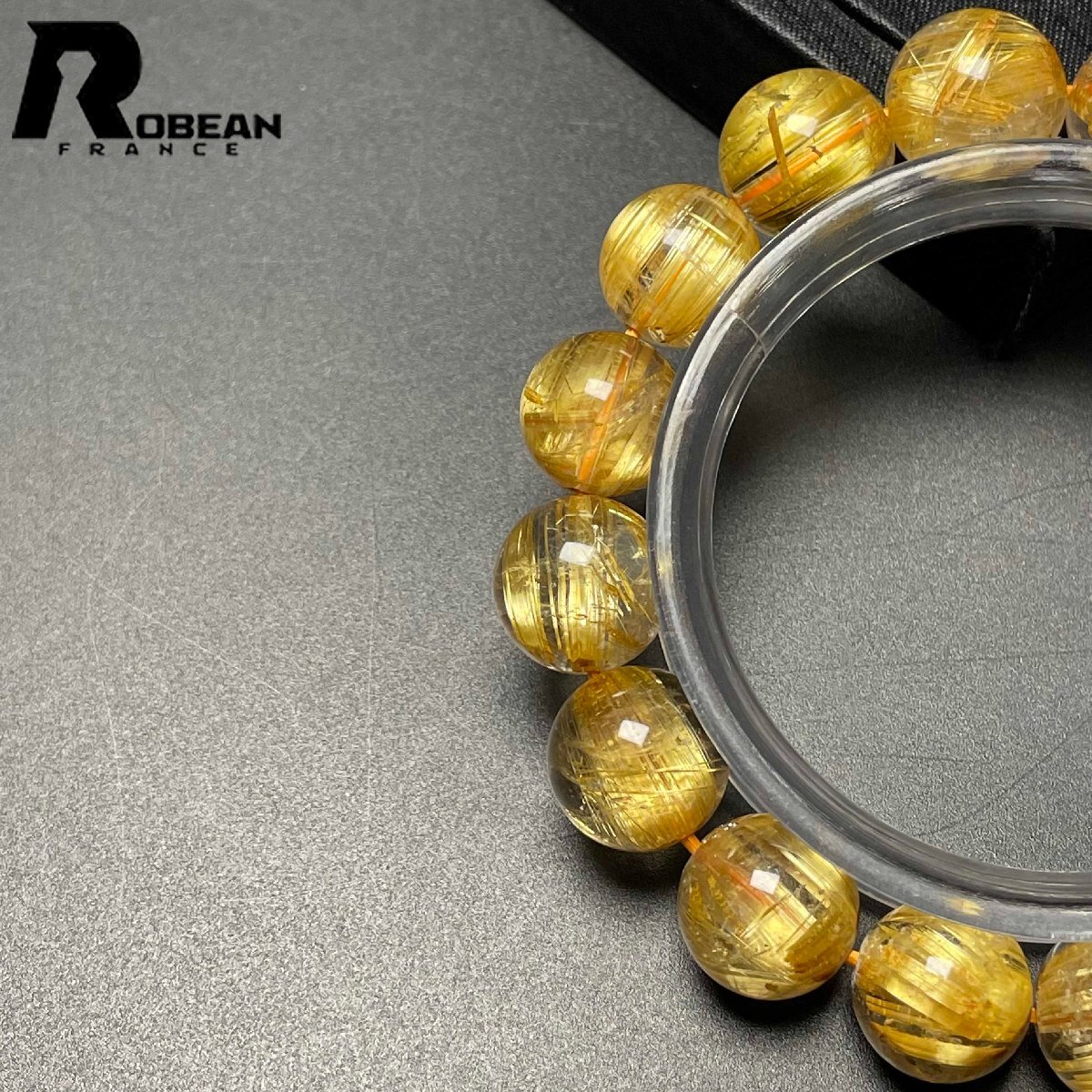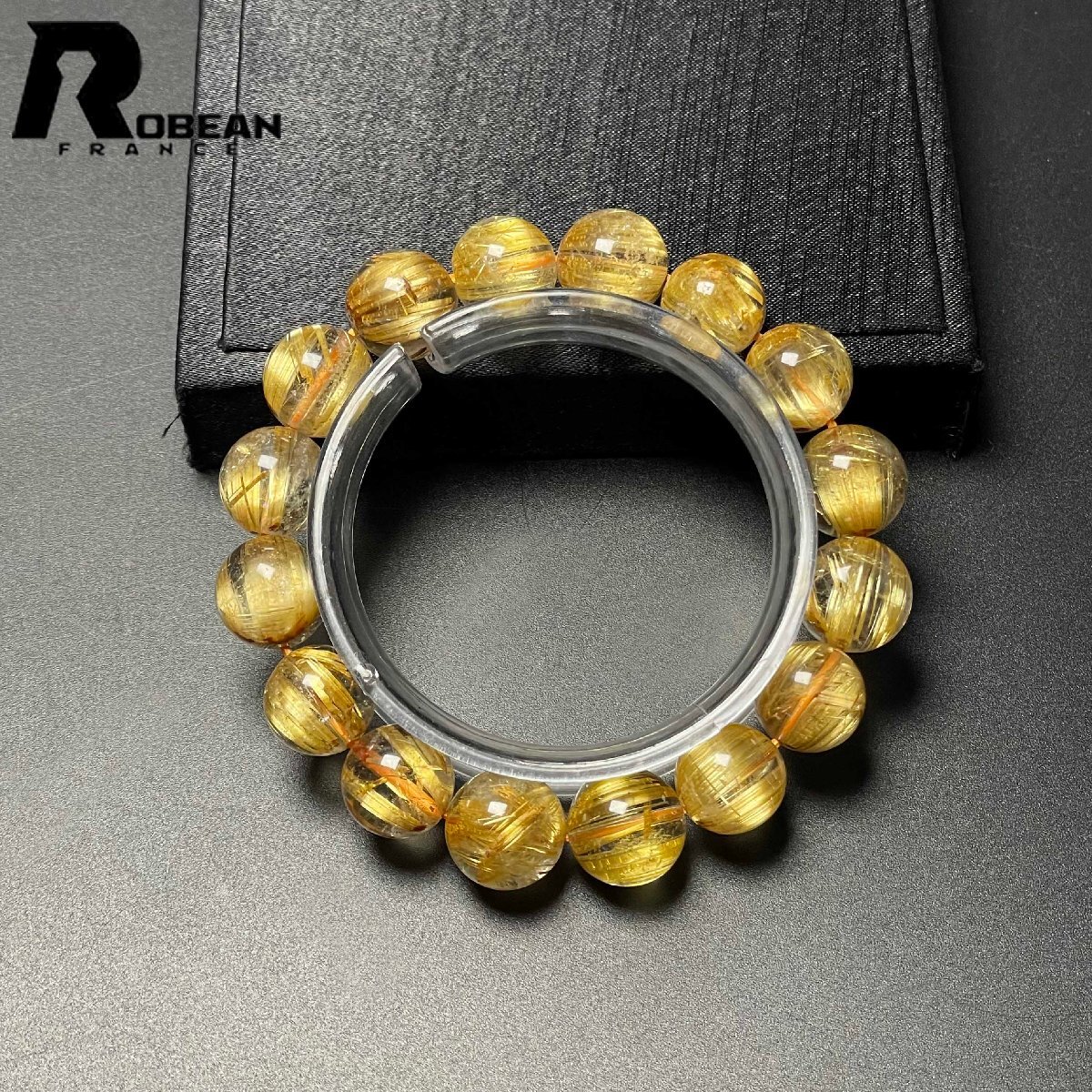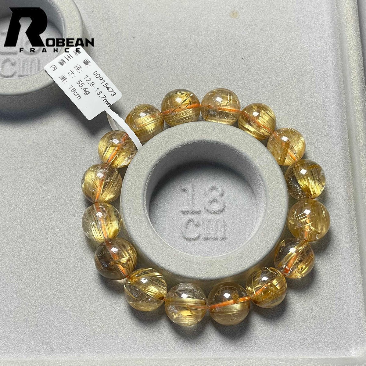 希少 EU製 定価181万円★ROBEAN・極!極満針ルチルクォーツ★ ブレスレット パワーストーン 天然石 金運 お守り 12.8-13.7mm D0915473