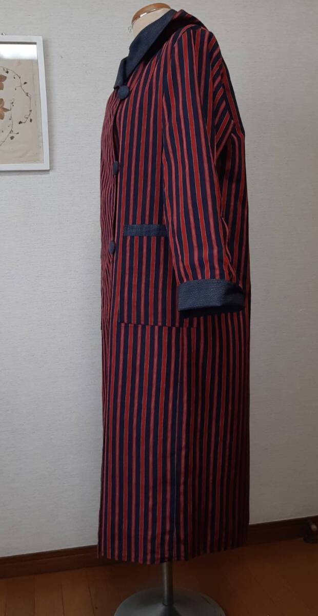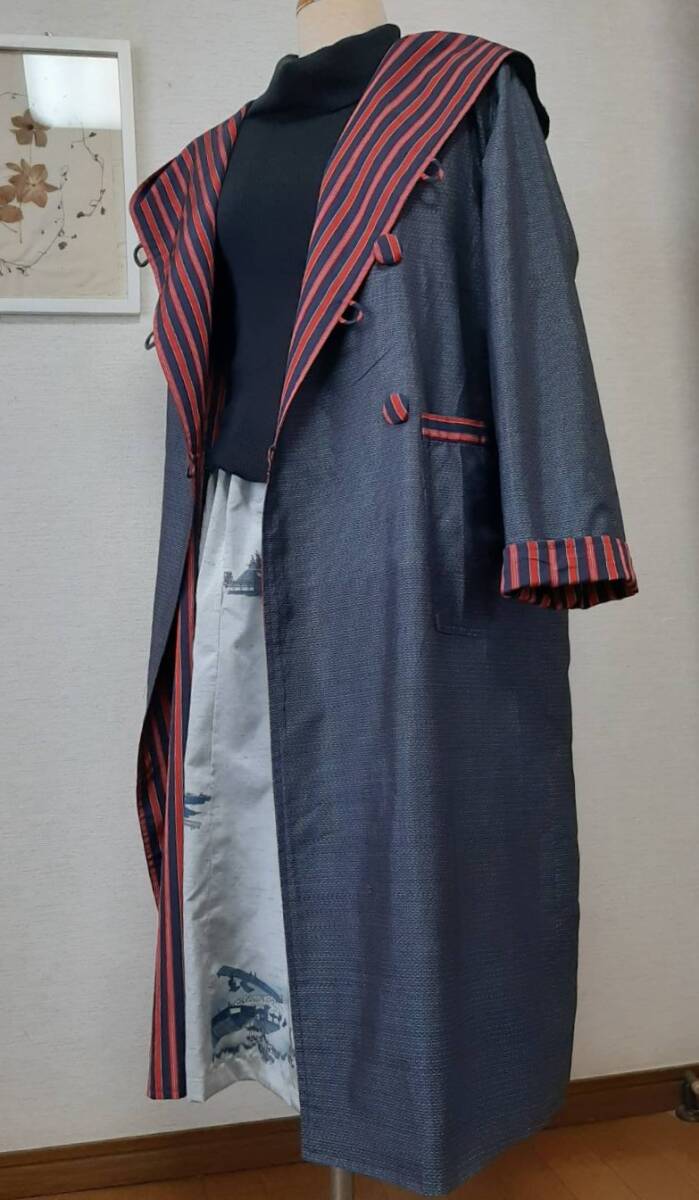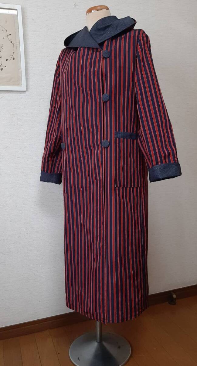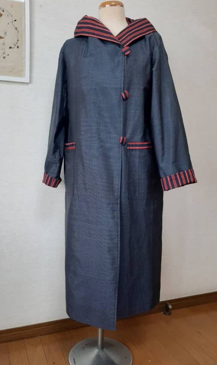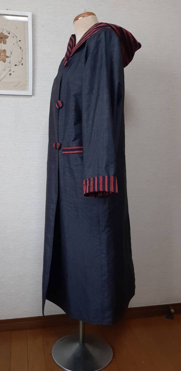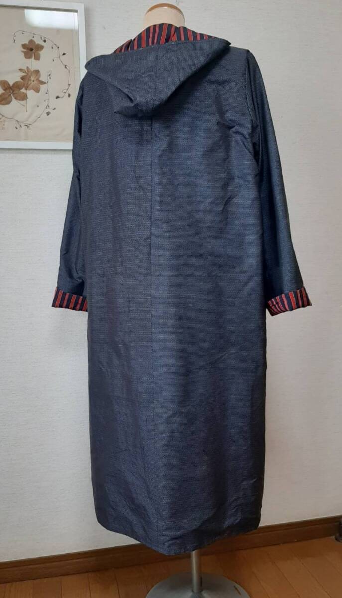 【送料無料】着物リメイク 大島紬 ハンドメイド 1点物 リバーシブル仕立て ロング フードコート  紬 軽い 暖かい