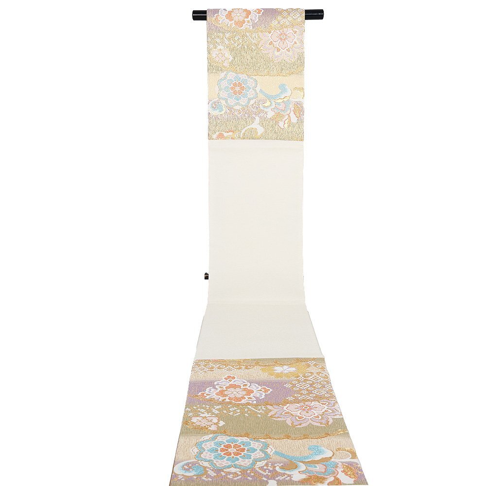 西陣認証ついていません。 留袖・付下げ・訪問着用にいかがです。 未使用品。六通 芯入り仕立て上がり品。 すっきりとした配色で現代の空間に映えるもの。 日本の古典文様をはじめ、長い歴史で培った高い技術に 今様の美しい意匠が光ります。 とても上品な帯です。 仕立て上がり。 上品な仕上がりになっています。 生地の状態は良いと思います。 目立ったシミ汚れはないと思います。 美品です。 |