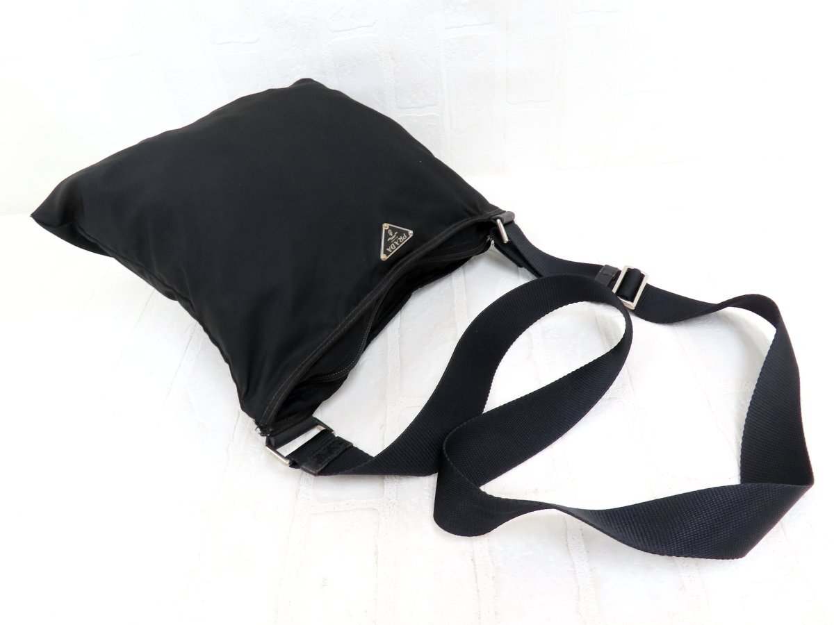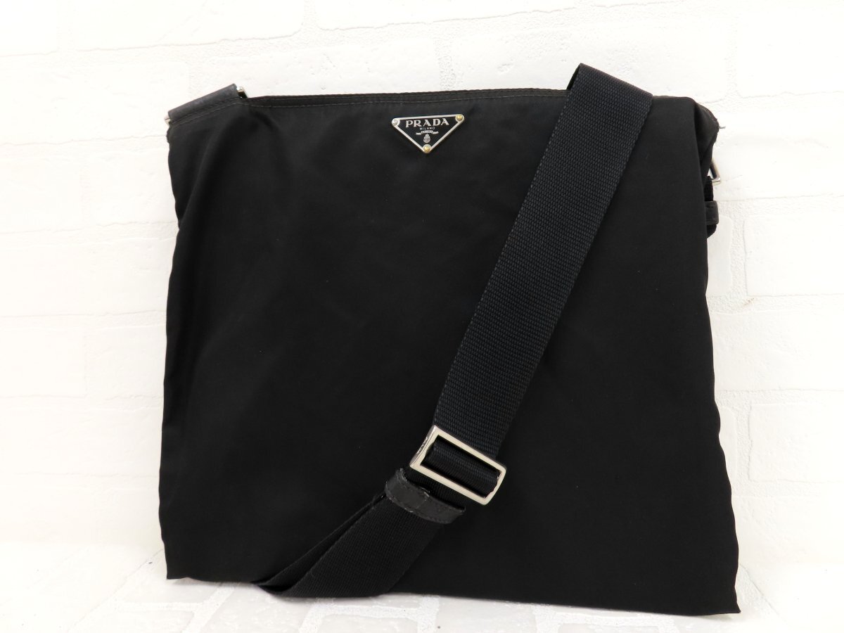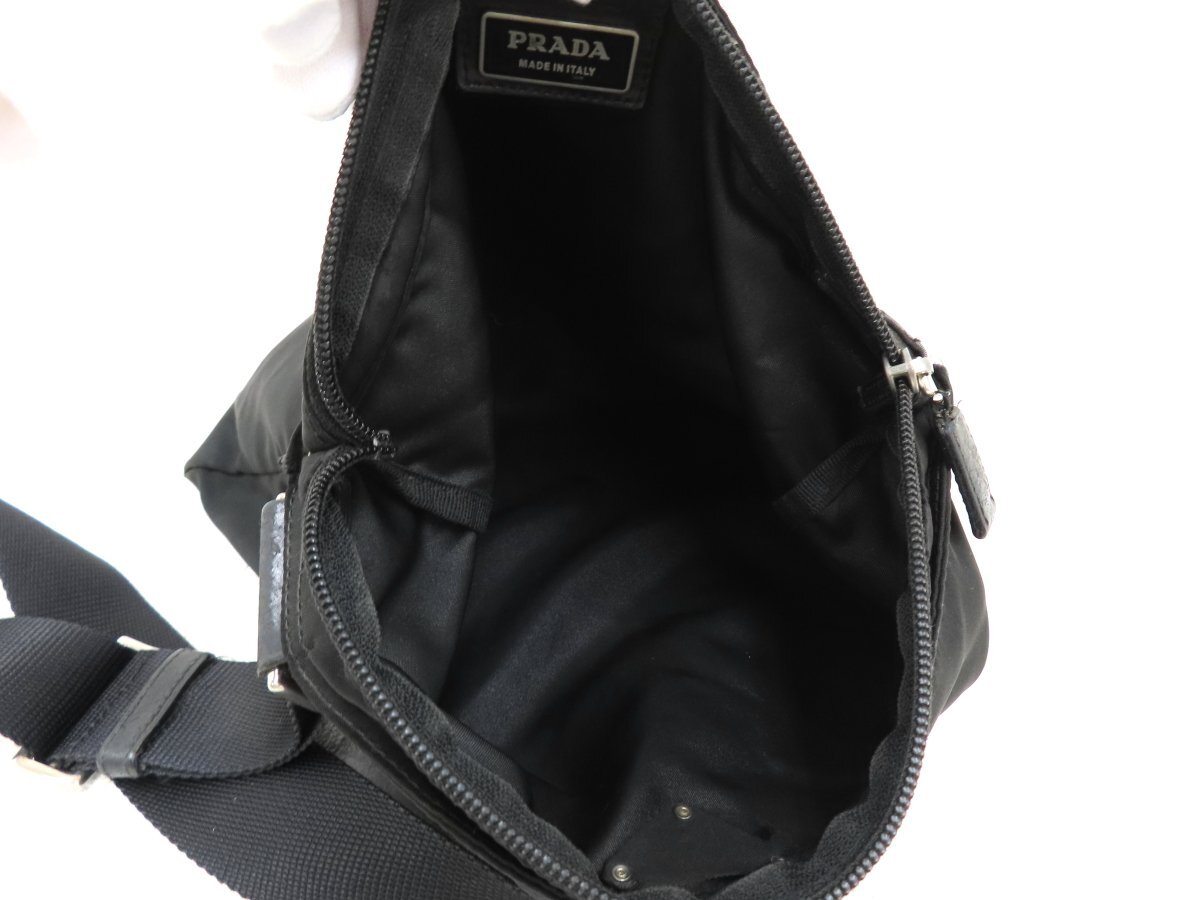 ◆美品◆PRADA プラダ◆ナイロン カーフ レザー 本革◆ショルダー バッグ サコッシュ◆ブラック シルバー金具◆イタリア製◆A13692