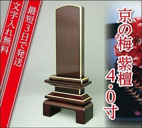 『最短3日で発送/文字入れ無料』国産品 京の梅 漆仕上げ紫檀 4.0寸【家具調位牌・モダン位牌】