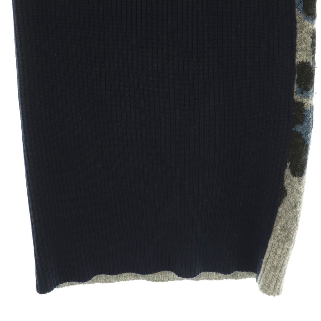 サカイラック sacai luck ニット スカート タイト ひざ丈 アルパカ混 レオパード柄 2 紺 グレー 黒 /CX ■OS レディース