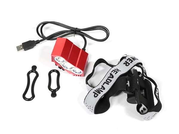 防水仕様!!☆新品☆ LED ヘッドライト CREE T6x3灯 7500LM USB 自転車 バンド付き ヘッドライト アウトドア サイクリング 赤 レッド
