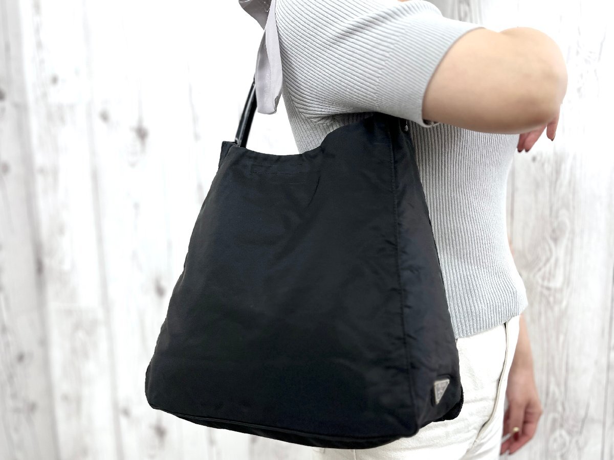 【ブランド】PRADA プラダ 【形】ハンドバッグ ショルダーバッグ 開閉マジックテープ・外ポケットなし・内ポケット1 【素材】ナイロン 【色】ブラック 【A4収納】不可 【サイズ】横底約31×縦真ん中約27×幅約11×ハンドル約50センチ 【付属品】なし 【状態】 ⑨極美品 未使用品ではないのでスレ汚れなどあるかもしれませんが、素敵なバッグになります。 ※できる限り写真に載せておりますのでご参考ください。 ※※※状態の詳細※※※ ⑩新品・未使用 ⑨極美品 ⑧美品 ⑦一般的な使用感でも美品に近い ⑥一般的な使用感 ⑤多少使用感あり ④使用感あり ①~③ジャンク品・リペア必要 | ||
