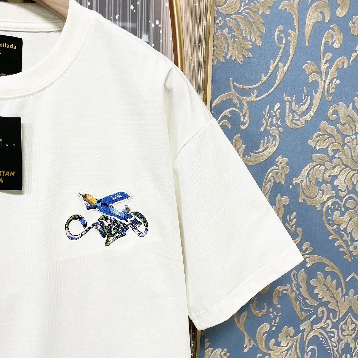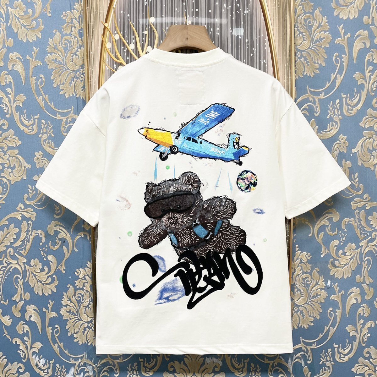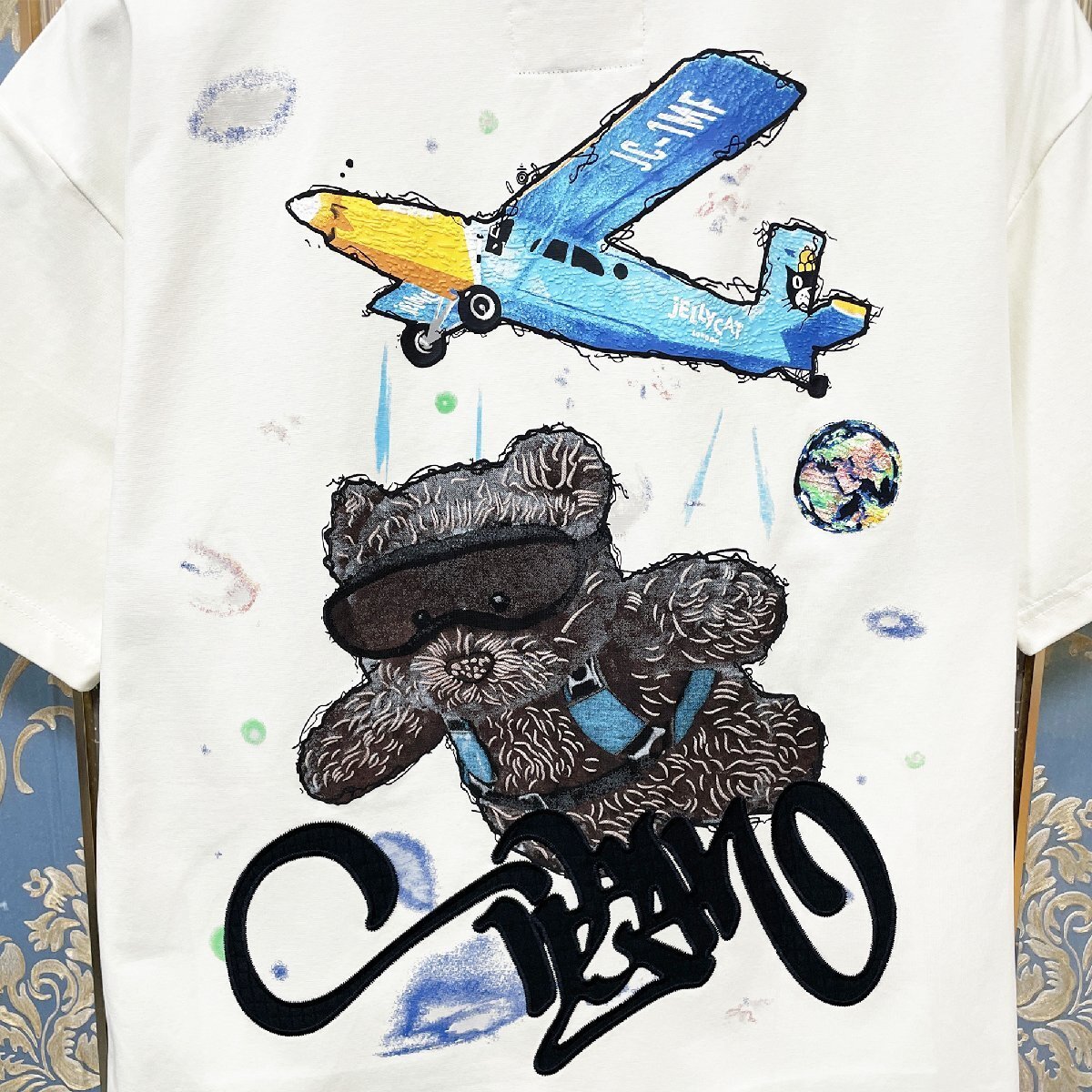定価2万★christian milada・ミラノ発・半袖Tシャツ★上質綿100% 快適 通気 クマ柄 遊び心 刺繍 丸首 ゆったり トップス スウェット 夏 2XL/52サイズ