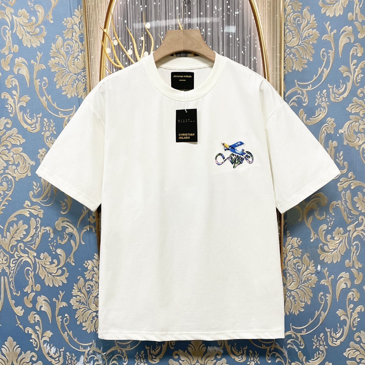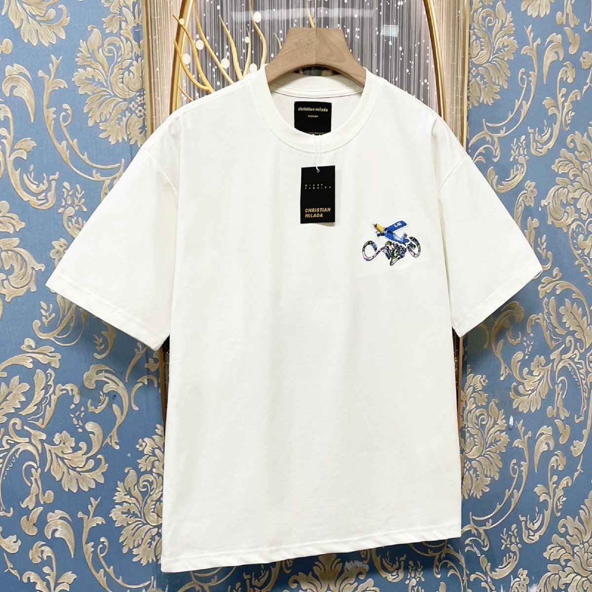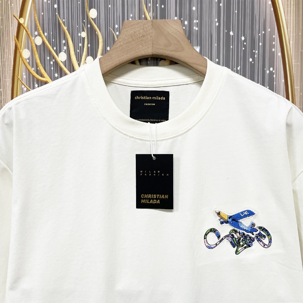 定価2万★christian milada・ミラノ発・半袖Tシャツ★上質綿100% 快適 通気 クマ柄 遊び心 刺繍 丸首 ゆったり トップス スウェット 夏 2XL/52サイズ