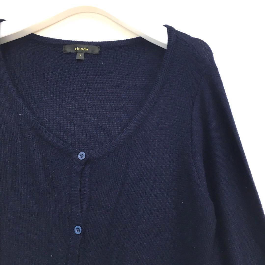 rienda リエンダ ノーカラーカーディガン ネイビー