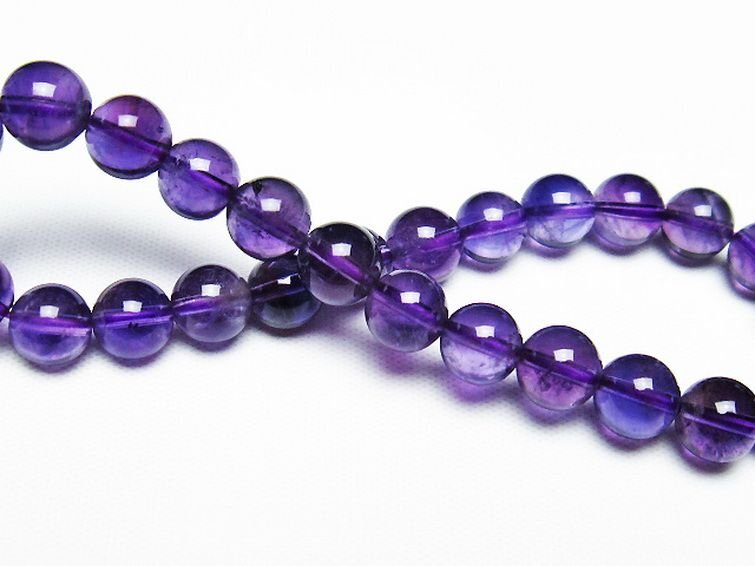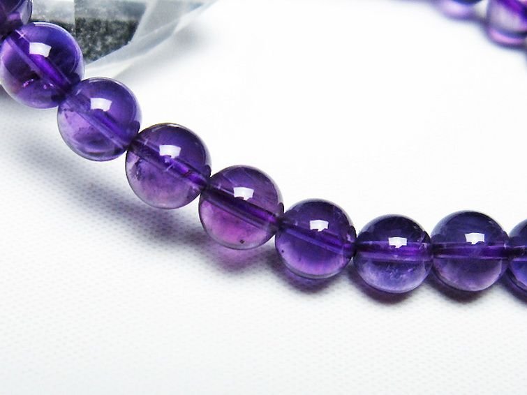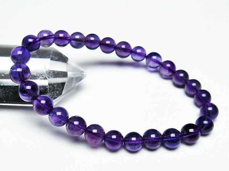 ■商品名: アメジストブレスレット ■商品ID: T406-3420 ■商品重量:約 13.3g ■商品サイズ:内周約:161mm(±5mm)粒直径約:7mm(±0.5mm) 【アメジストクォーツ(紫水晶)】 アメジストは鉄分によって紫色に発色した水晶の一種です。 名称はギリシャ語で酒の意味のmethyと否定辞のa、つまり「酒に酔わない」「この石でできた盃で酒を飲めば悪酔いしない」に由来するとされています。 「酒に酔わない」と言われる通り、アメジストは体調面への作用が大きく、血液を浄化して解毒、解熱作用を高め皮膚病の治療や不眠を解消するのにも用いられたと言われています。 アメジストは真実の愛を導く愛の守護石とも呼ばれ恋愛運UPの石としても広く知られています。 理想的な出会いをもたらす効果や持ち主に美や調和を与え、セクシーな魅力を引き出すとのことですので恋愛成就のお守りとしても最適といえるでしょう。 また、くよくよしたり傷ついたりしている時には癒し、目前の困難を乗り越えていけるように精神を強くするヒーリング効果も期待できます。 不眠にも効果があるとされていますので、ストレスを抱えている人にもおすすめの石です。 ⇒ アメジストをもっと詳しく ◆ワンポイント情報 アメジストは産地によって結晶や色味の傾向が変わります。 例えばブラジル産は結晶が大きめだが色味は少し薄め、ウルグアイ産は結晶は小さく細かいが色味は濃紫の傾向、メキシコ産は細長い結晶でライラックの様な明るく透明感のある紫など特徴が異なります。 産地による好みが人によって分かれるのもアメジストならではと言えるでしょう。 |