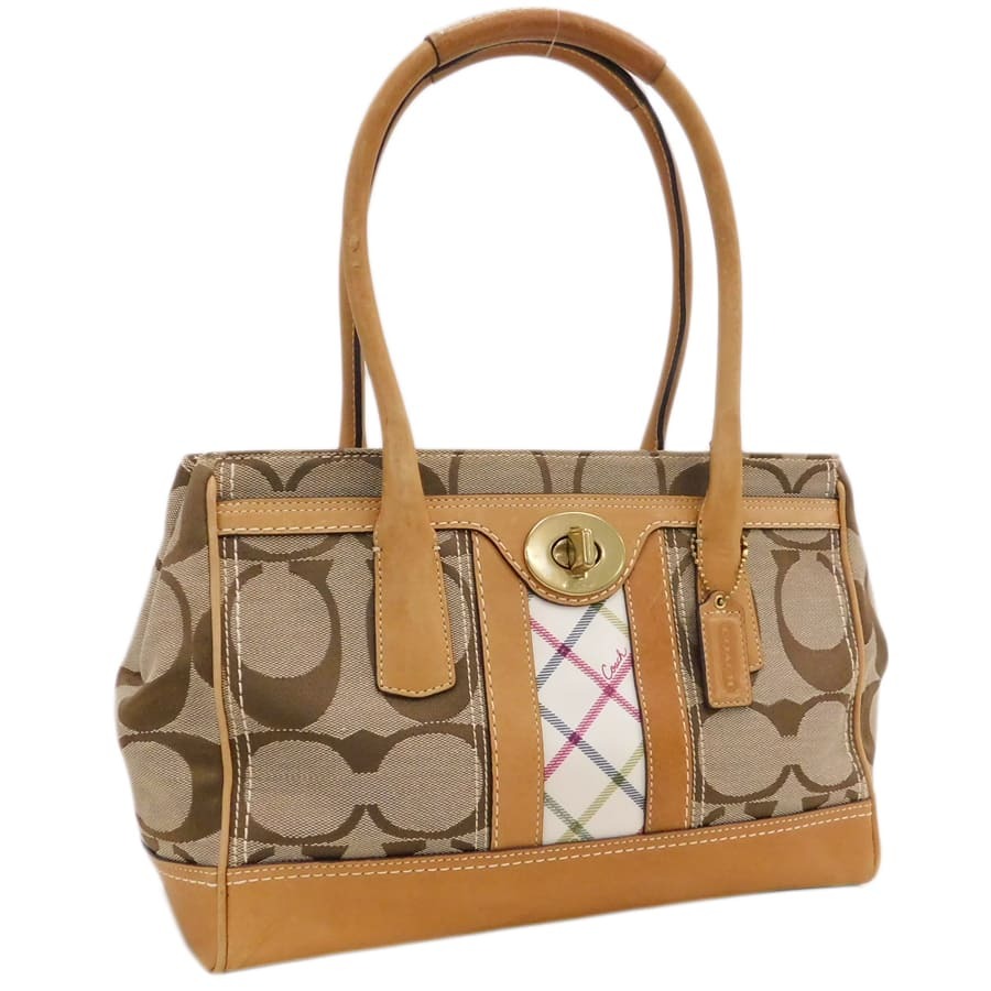 1円 ■ コーチ/トートバッグ/12465/ブラウン系/キャンバス×レザー/シグネチャー/COACH ■E.Bsr.An-30[中古]