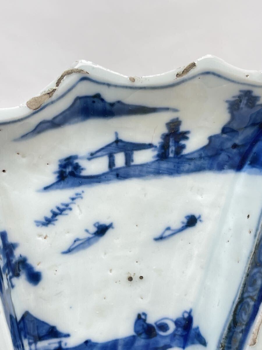 【B180】明時代 古染付 山水紋 向付 青華 小鉢 お皿 古食器 古染付 陶磁器 賞物 置物 時代物 骨董品 中国古美術 |
