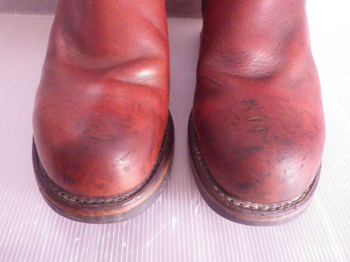 ◆商品説明:レッドウィングのエンジニアブーツ8271です。しっかりした作りの本革ブーツで履き込んだ感じがビンテージ感タップリでカッコいいです。これから秋のツーリングベストシーズンを迎えやはりバイカーはブーツにこだわりたいところです。またツーリングだけに限らずタウンユース、コレクションとしても価値のあるブーツです。状態は先端のキズ、黒ずみ、ソールの減り、後ろ側上部の小穴等ありますがすぐに激渋のエージングされたブーツが活用できます。ソールも厚めですので足長効果も期待でき、かっこいいです。格安スタートですのでこれからのツーリング、タウンユース、コレクション等々に即戦力で大活躍間違いなしですので是非ともご落札くださいませ