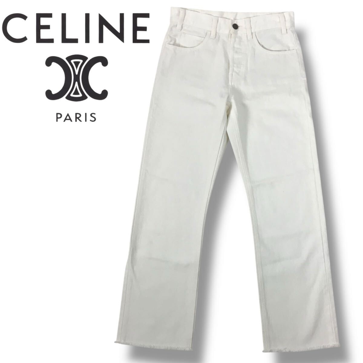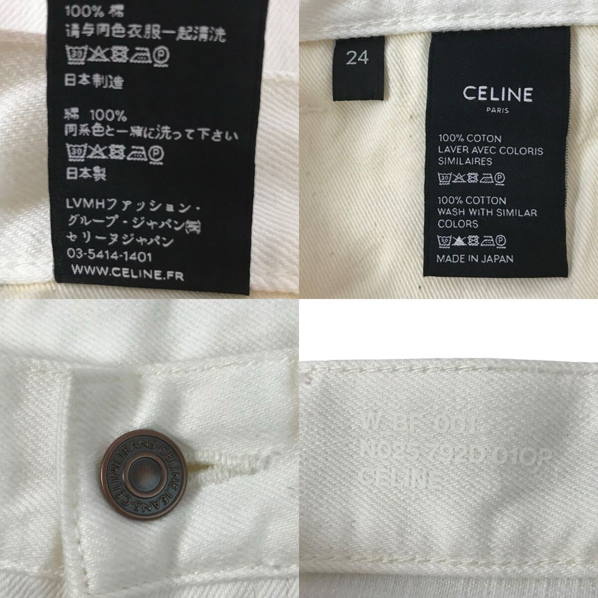 d63 良品 CELINE セリーヌ ホワイト デニム パンツ ジーンズ デニムパンツ ストレート 24 コットン100% 日本製 正規品 ボトム レディース