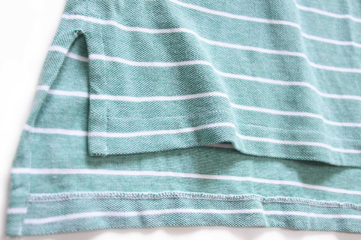 左胸にロゴ刺繍あり、裾サイドにスリット入り