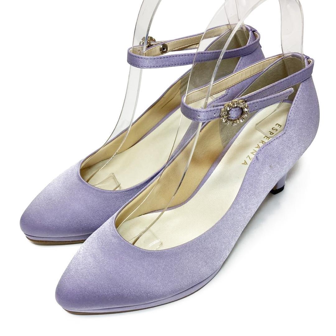 ESPERANZA エスペランサ アンクルストラップ パンプス ビジュー サテン 23cm