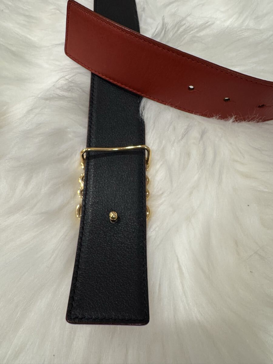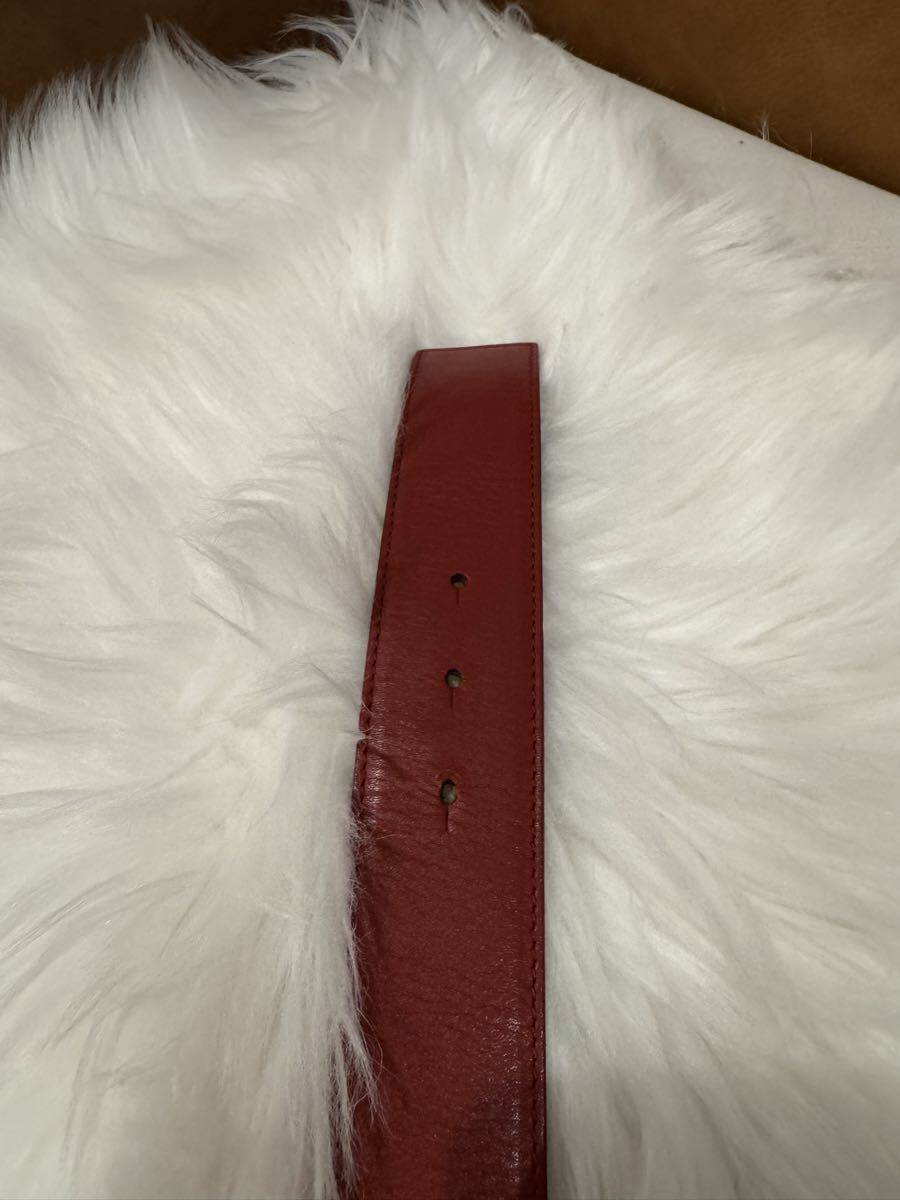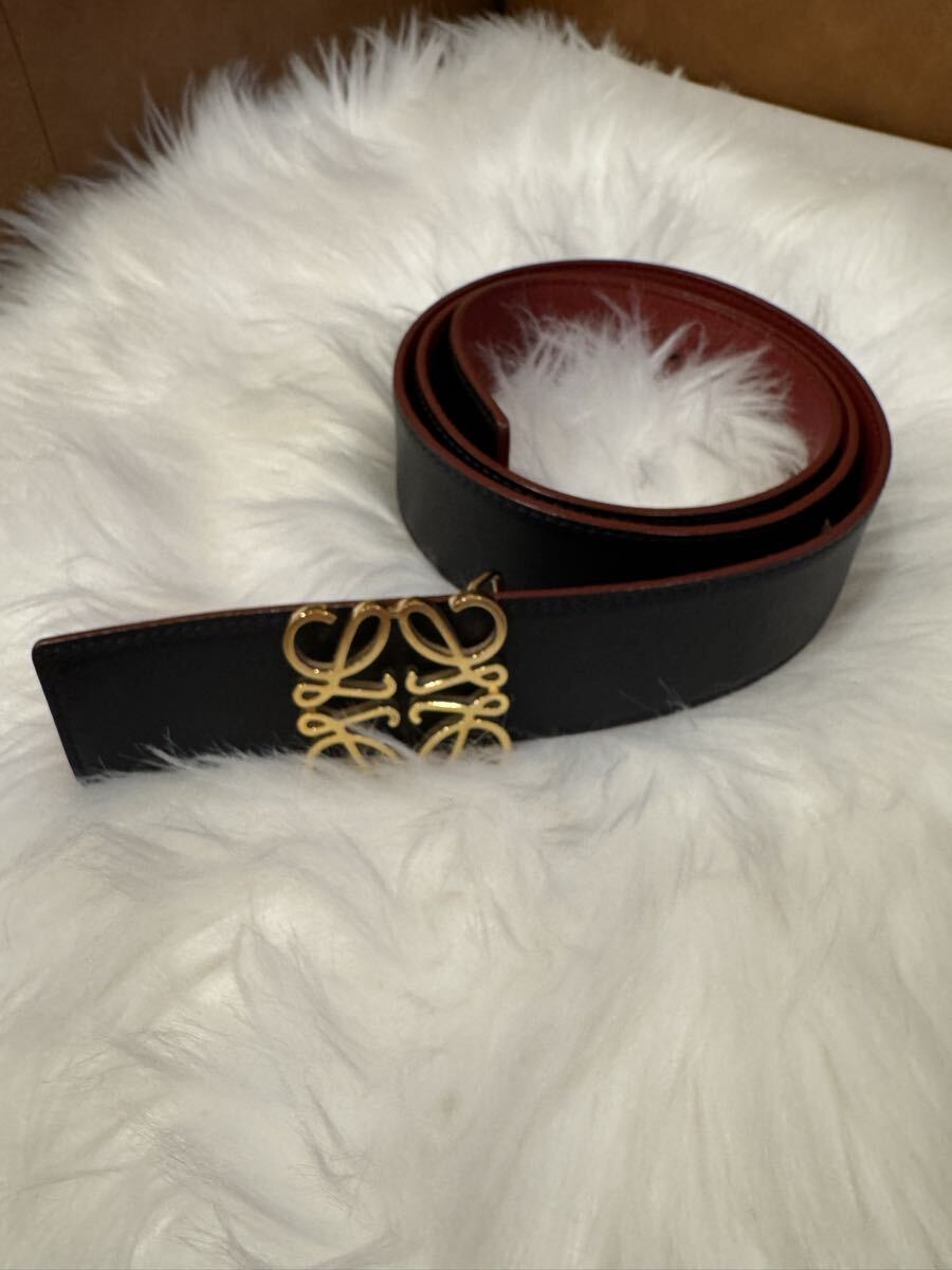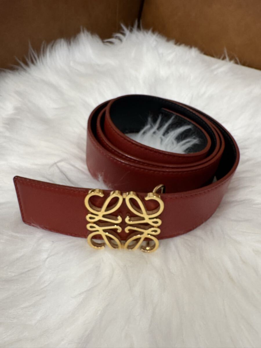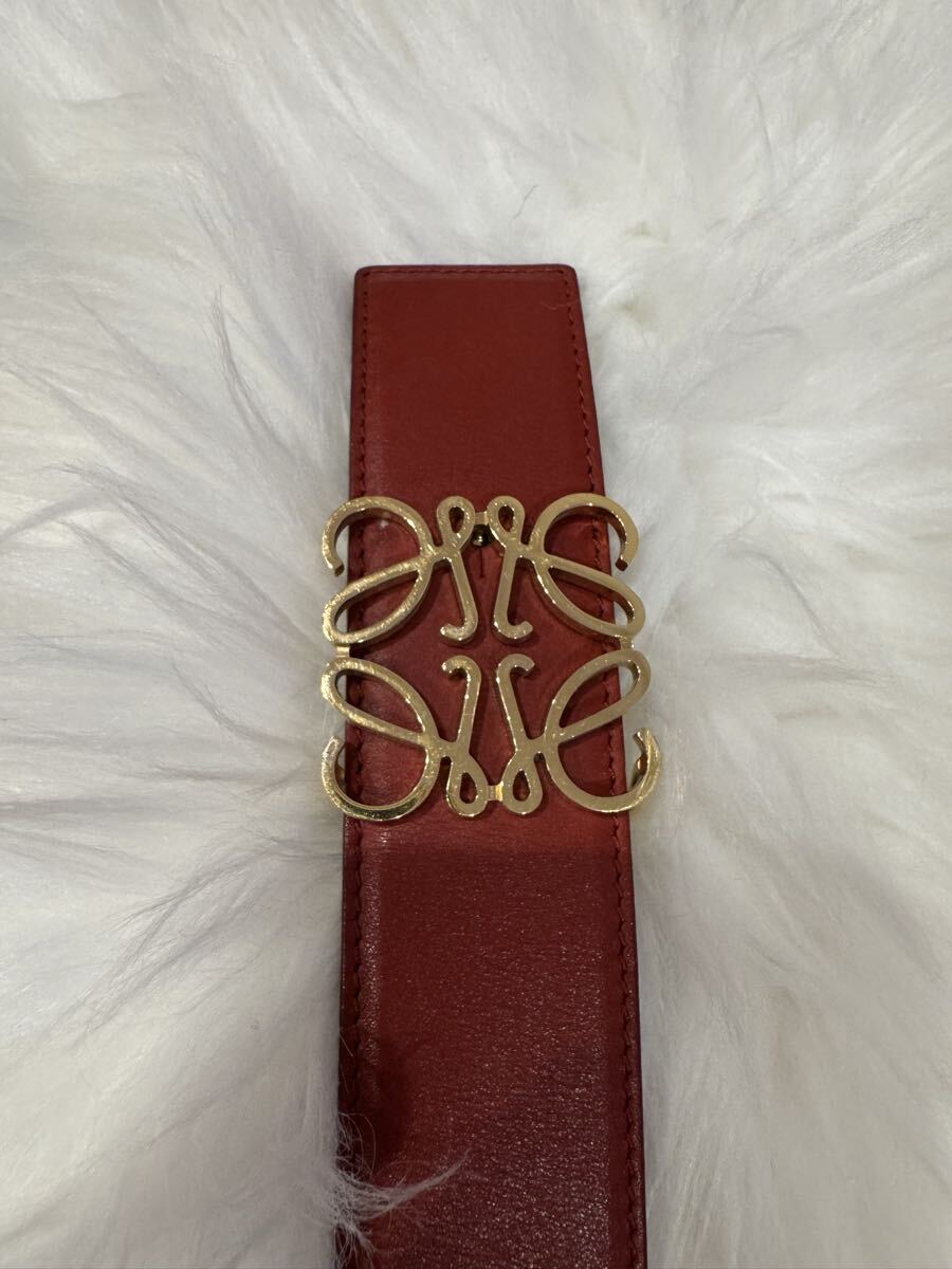 1円スタート ロエベ LOEWE ベルト アナグラム レザー レッド ブラック メンズ 95-100cm