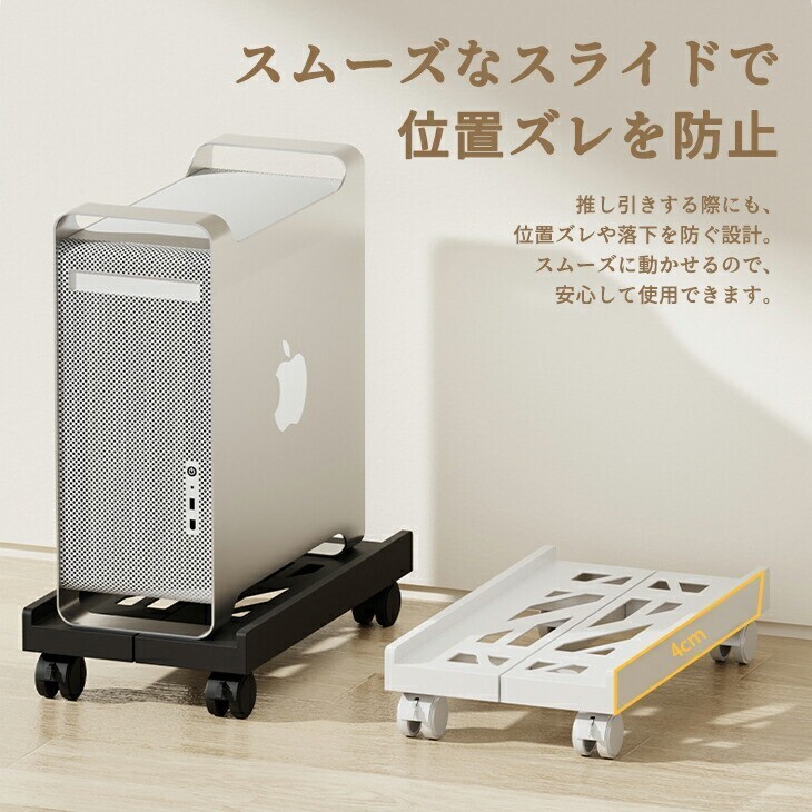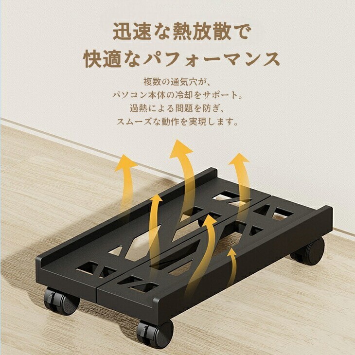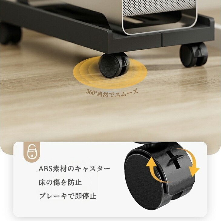 【ストッパー付きキャスター】高品質なプラスチックを使用し、強力な耐荷重性を備えており、コンピューターケースの安全性を確保します。PCだけでなく、重い観葉植物をラクラク移動できる。固定したい時の安定性は抜群ですので大事なコンピュータを置いても心配はありません。キャスターが付いていると重いPCでも楽に移動ができ、さらに掃除やメンテナンスもできるからです。良好な強度、良い靭性、そして長い間使用することができます。