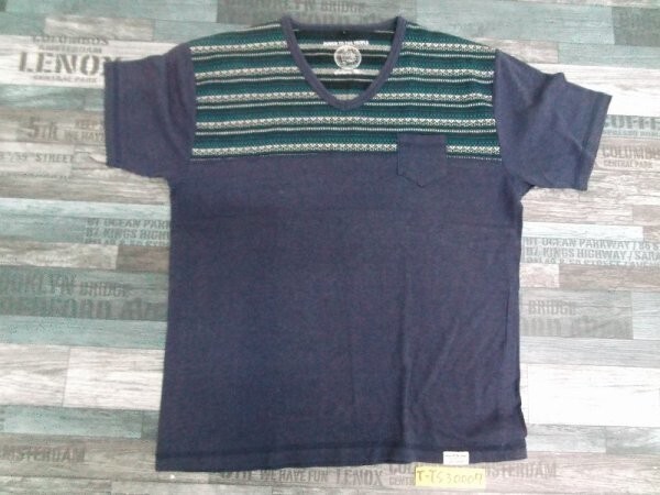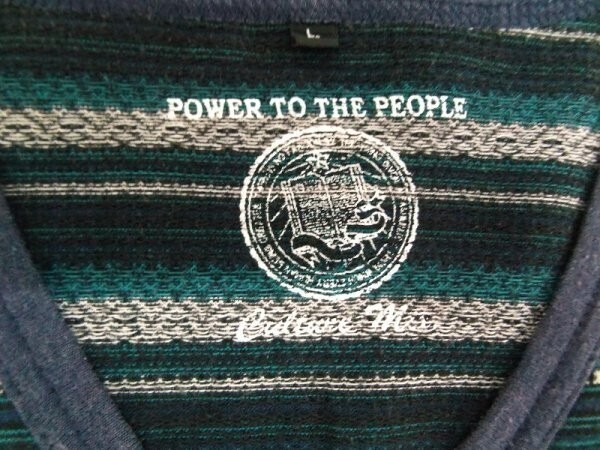 power to the people パワートゥーザピープル メンズ 柄切替え Vネック 半袖Tシャツ L 紺 です。