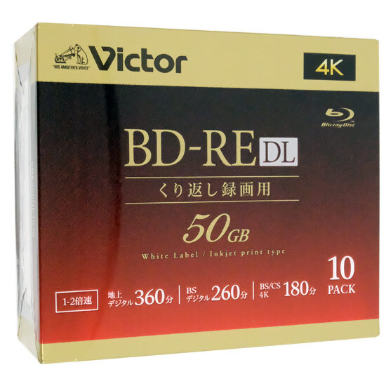 【新品訳あり(箱きず・やぶれ)】 Victor製 ブルーレイディスク VBE260NP10J5 BD-RE DL 2倍速 10枚 | |