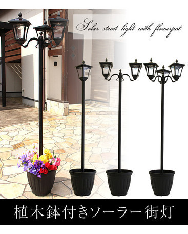 即決可@新品植木鉢付きソーラー街灯 3灯 | ||||||||||||
