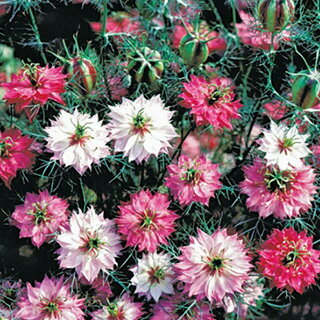 直まきができて育てやすく、自然風の花壇によく映える人気のニゲラ。花弁が厚く、切り花として花もち抜群。風変わりな花形