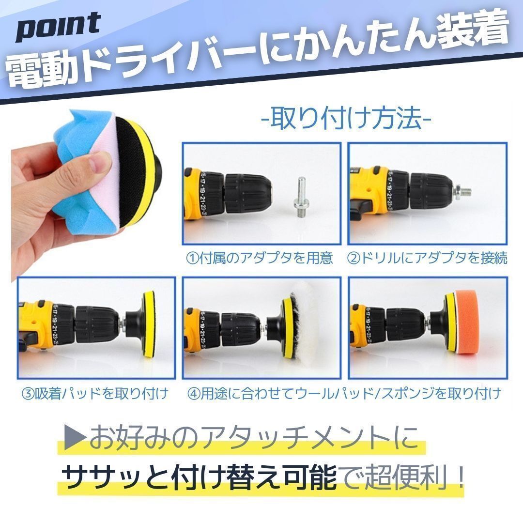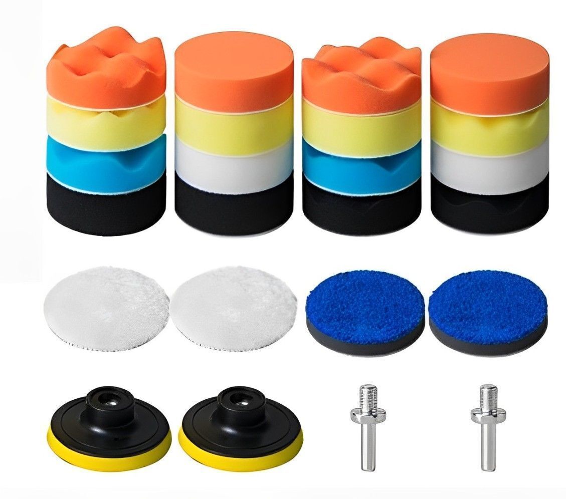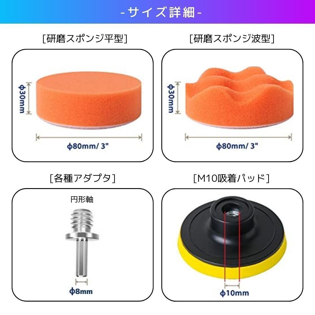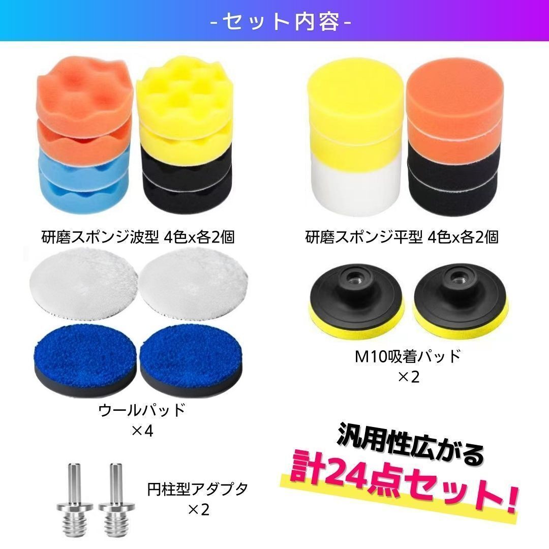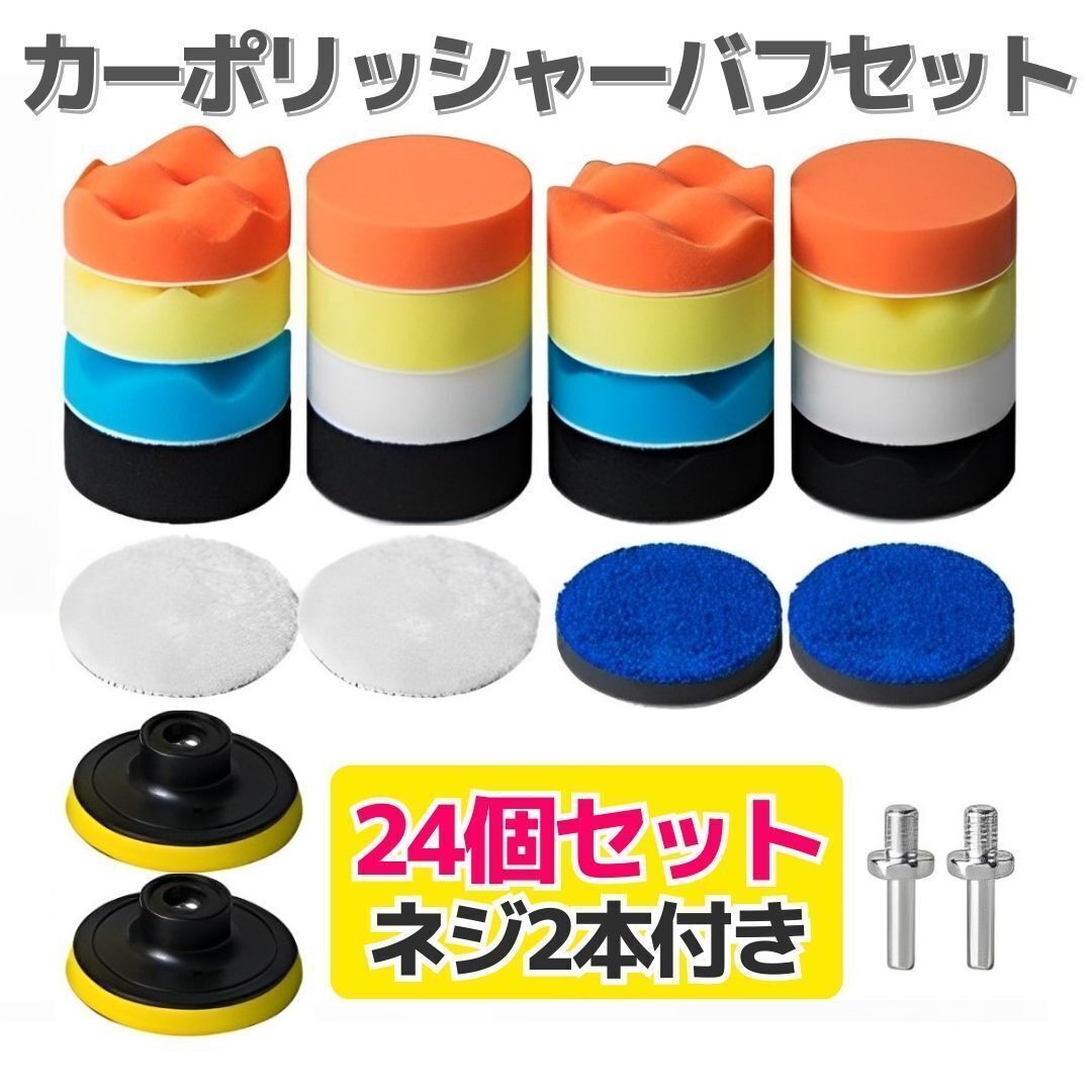 ポリッシャー バフ 電動ポリッシャー用 電気ドリル インパクトドライバー用 研磨パッド 洗車セット 洗車用 80mm 24点 軸付き (1114)