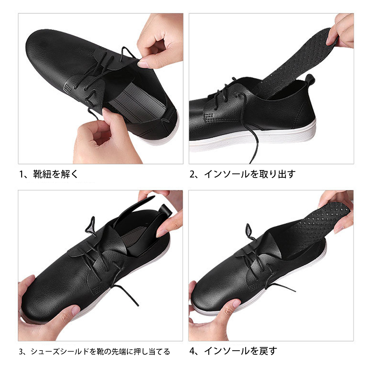 | 適した靴の種類 | スポーツシューズ、革靴、ブーツ、カジュアルシューズなど。 |