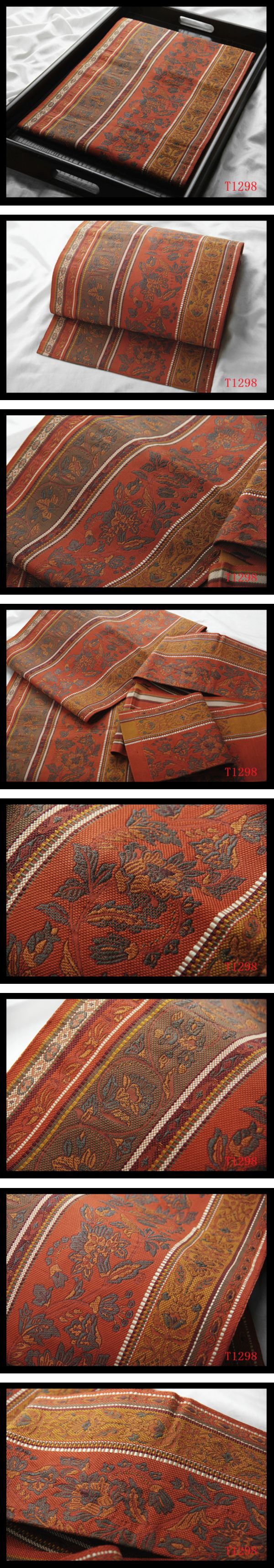 蔵【T1298】厳選逸品 本場筑前博多織 唐草更紗紋 赤茶色地 気品豊かに 正絹高級美術名古屋帯 ◇検簪着物袋帯和装小物帯締め