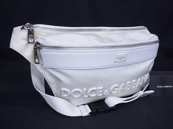 1円 ■美品■ DOLCE&GABBANA ドルチェ&ガッバーナ ナイロン×レザー ボディバッグ ウエストバッグ ウエストポーチ アイボリー系 FV3148