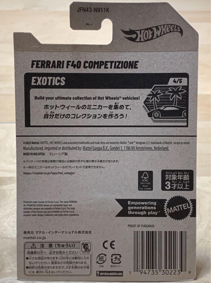 HOT WHEELS ホットウィール フェラーリ F40 コンペティツィオーネ FERRARI F40 COMPETIZIONE 日本語カード