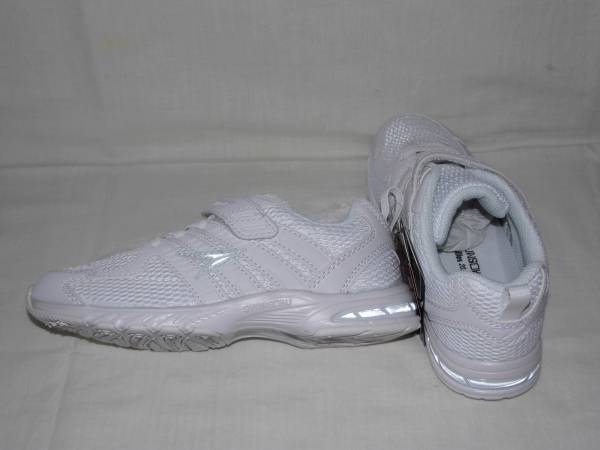 瞬足スニーカー 094 白 20.5cm 21.0cmにサイズ調整用の中敷き付けて ホワイト 男女ジュニア兼用 ひも+ マジックタイプ 校内履き、通学に