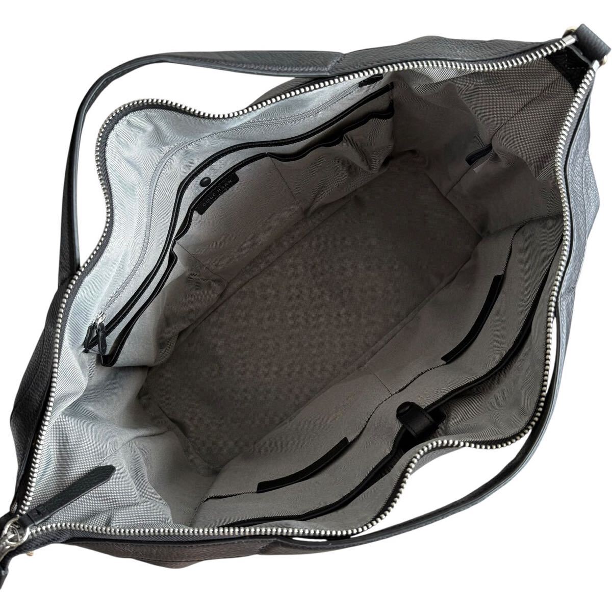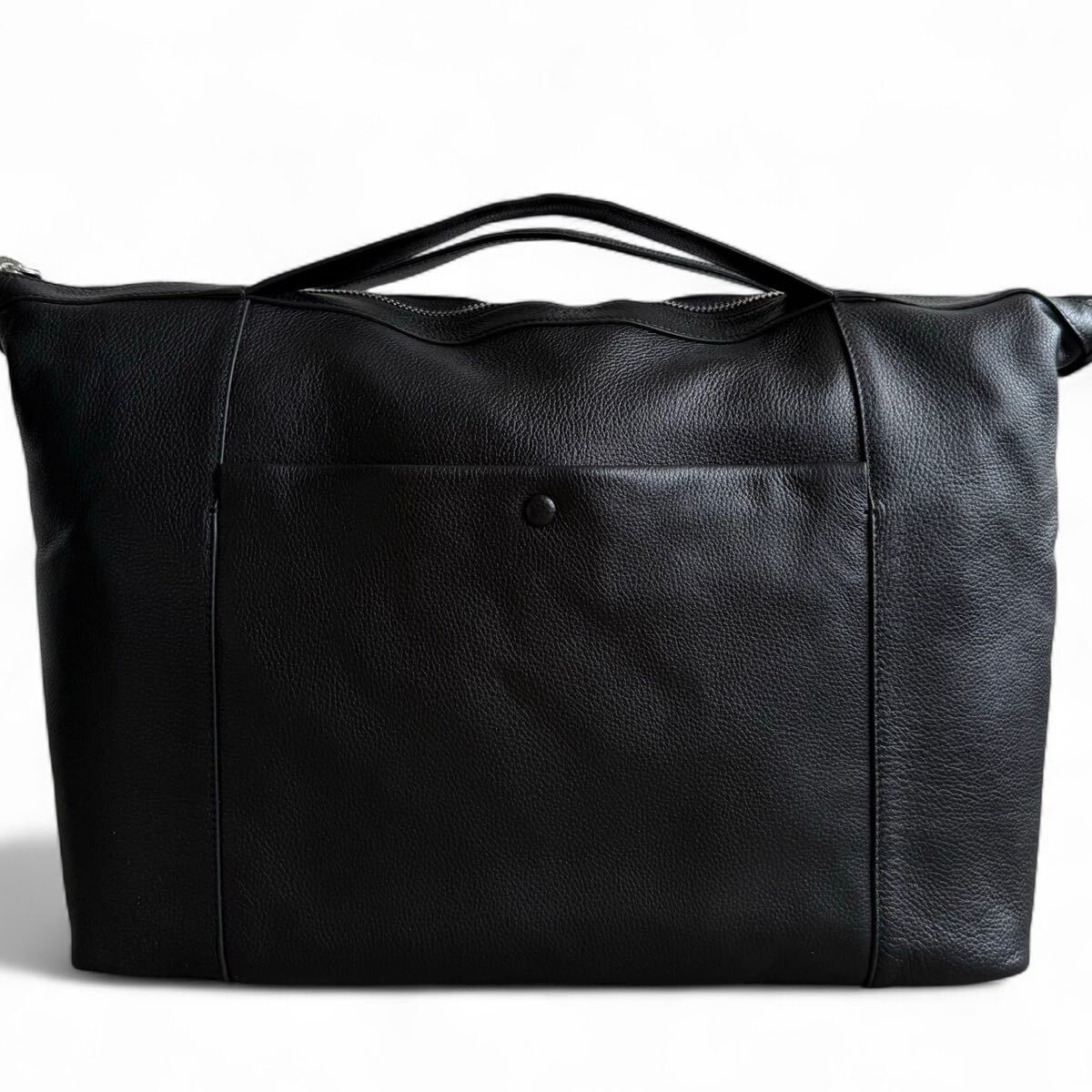 しっとりとした手触りのペブルレザー(シボ革)を贅沢に使用し、落ち着いた艶感と高級感を両立。丈夫で耐久性に優れ、日常使いからビジネス・トラベルまで幅広く対応します。開口部はダブルジップ仕様で大きく開き、内部には多機能ポケットを多数配置。着替えやPC、書類、小物などを整理して収納できる抜群の実用性を誇ります。