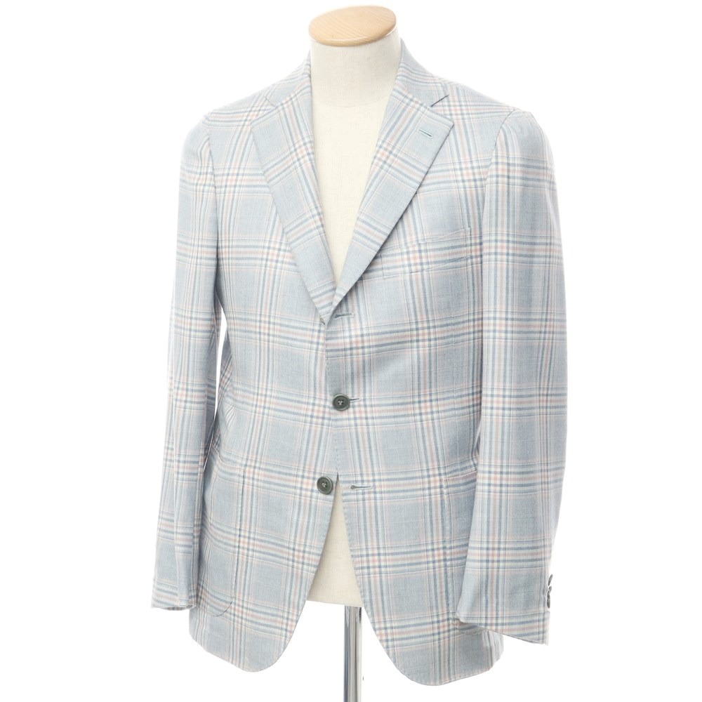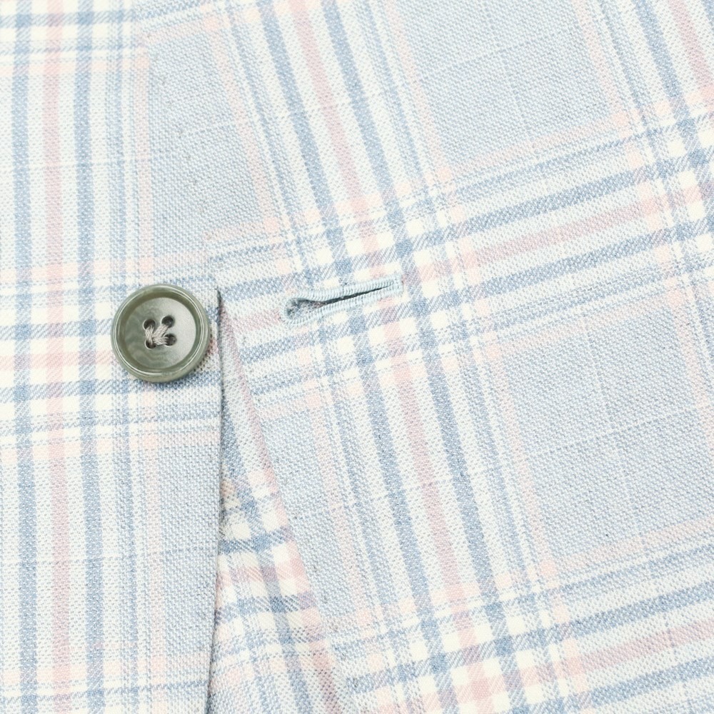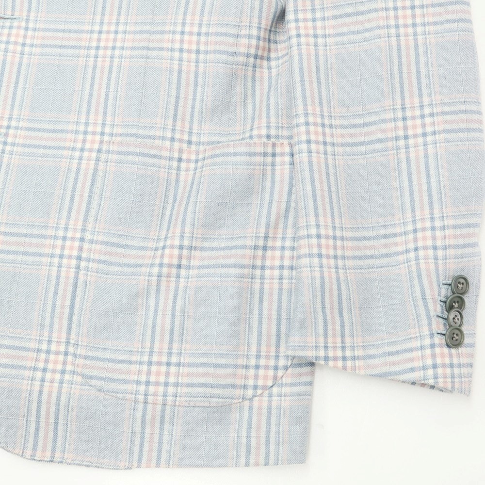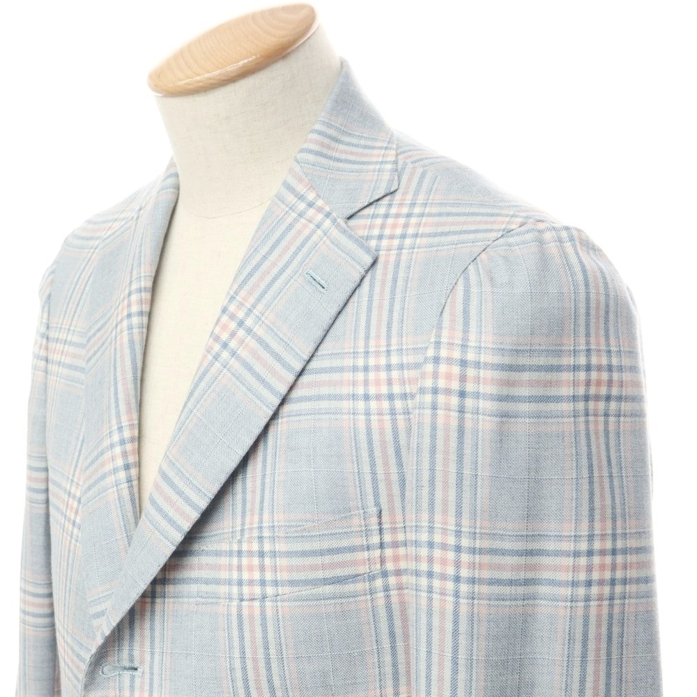 【中古】ルイジ ボレッリ Luigi Borrelli カシミヤシルク チェック ジャケット ライトブルーxピンク【44】 EPD
