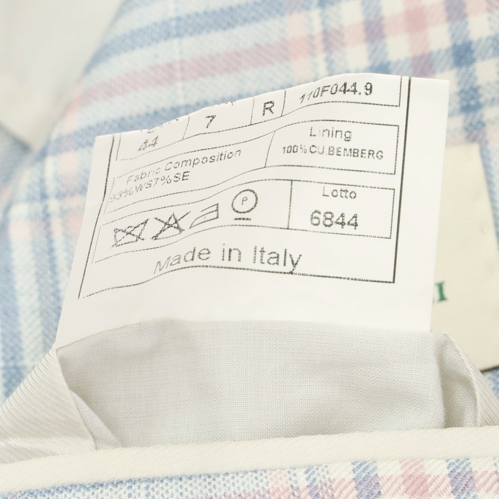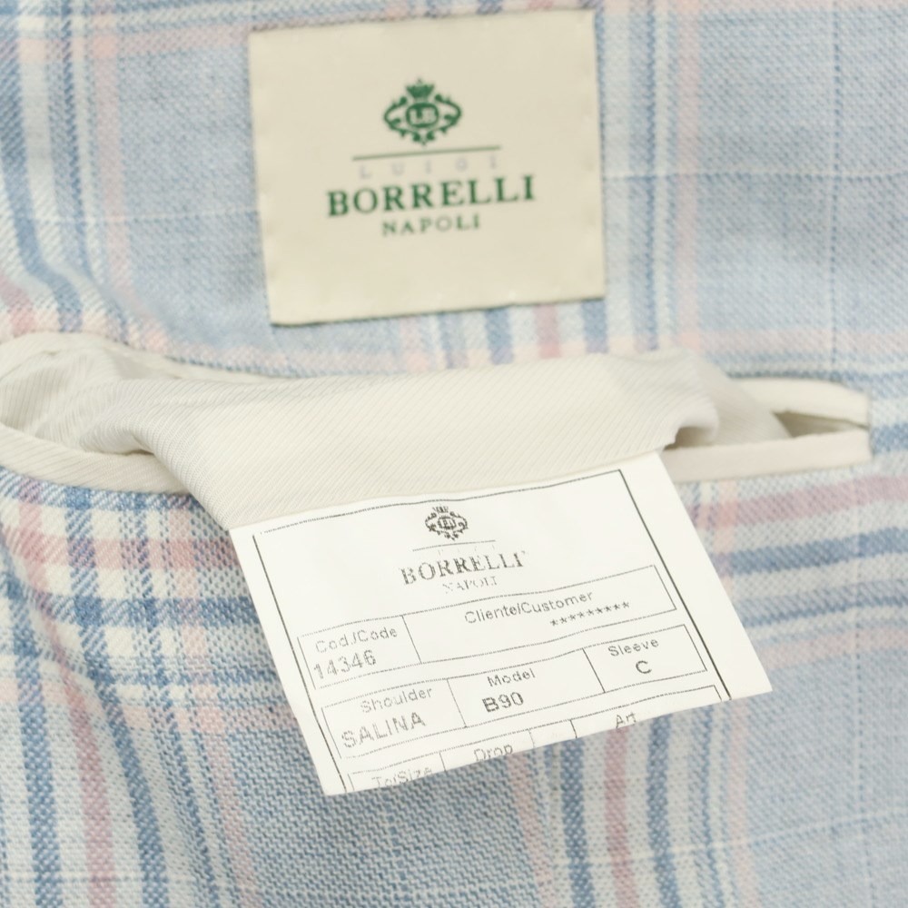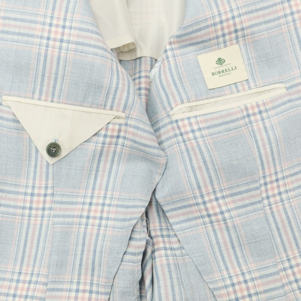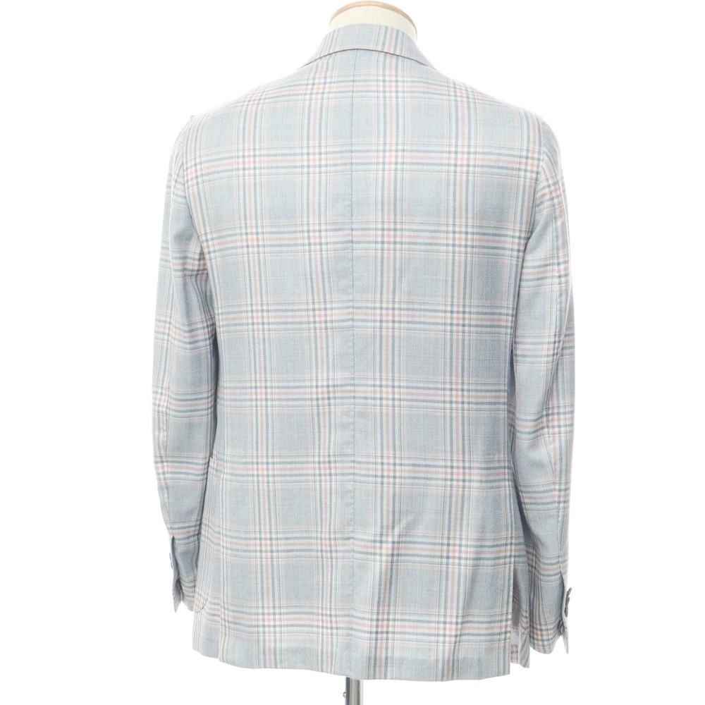 【中古】ルイジ ボレッリ Luigi Borrelli カシミヤシルク チェック ジャケット ライトブルーxピンク【44】 EPD