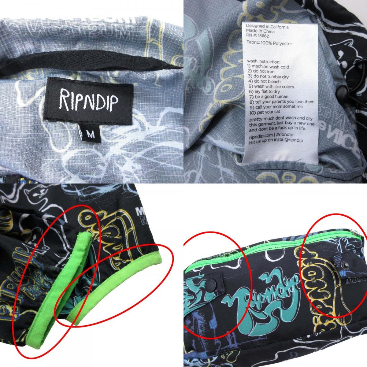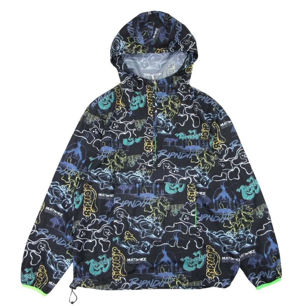 良品 RIPNDIP リップンディップ anorak アノラック 総柄 マウンテンパーカー ナイロンジャケット ブルゾン M ブラック