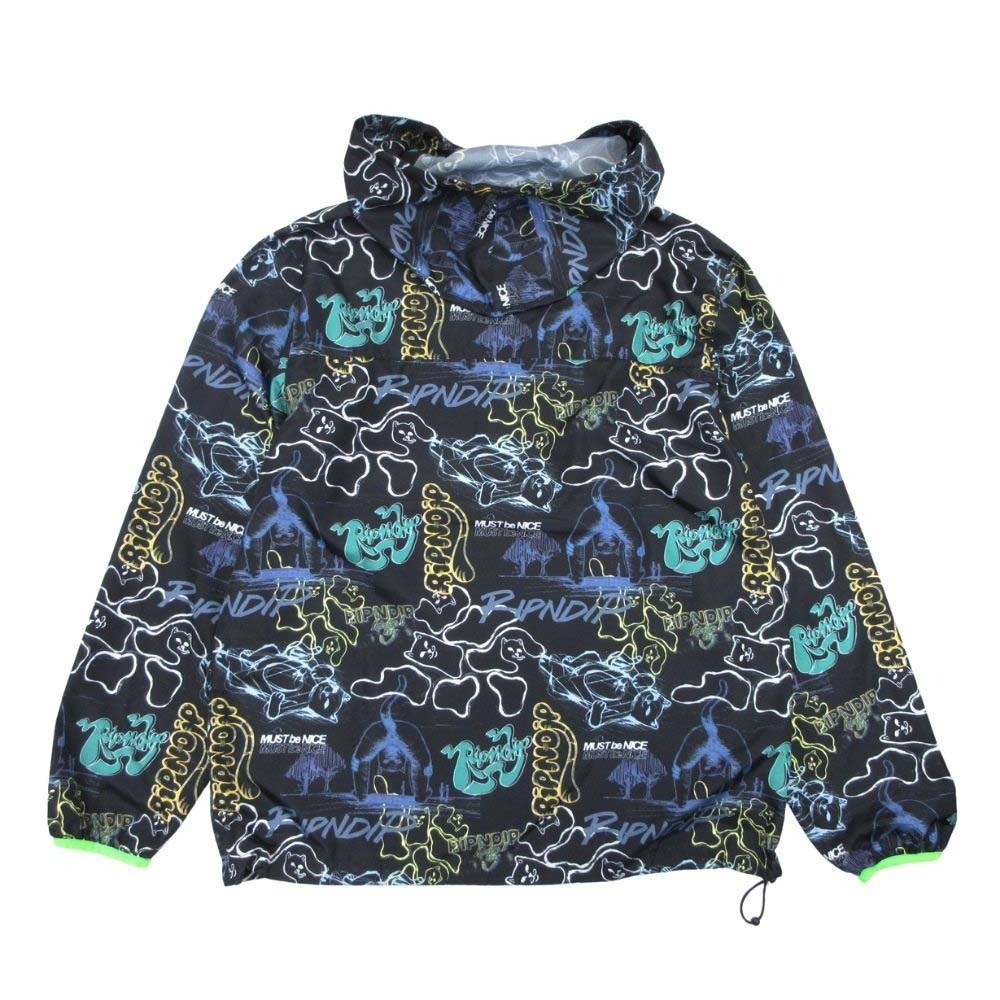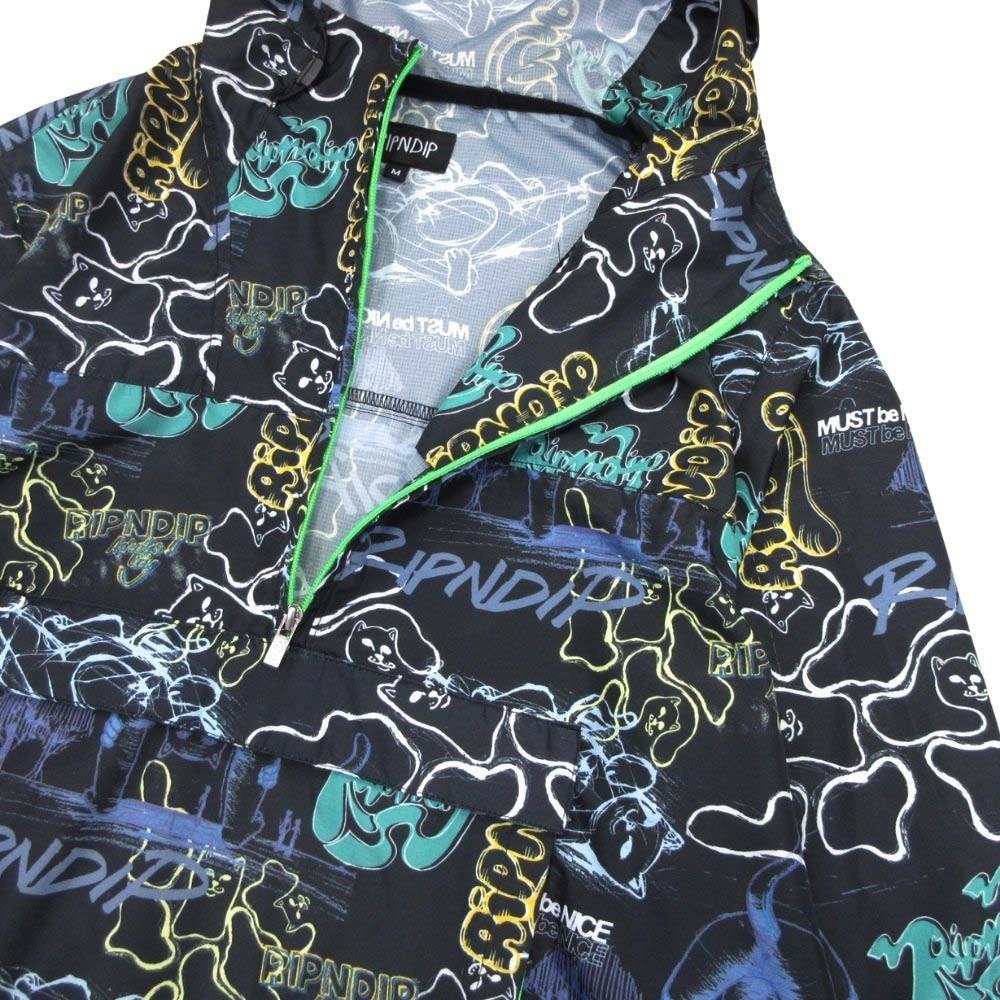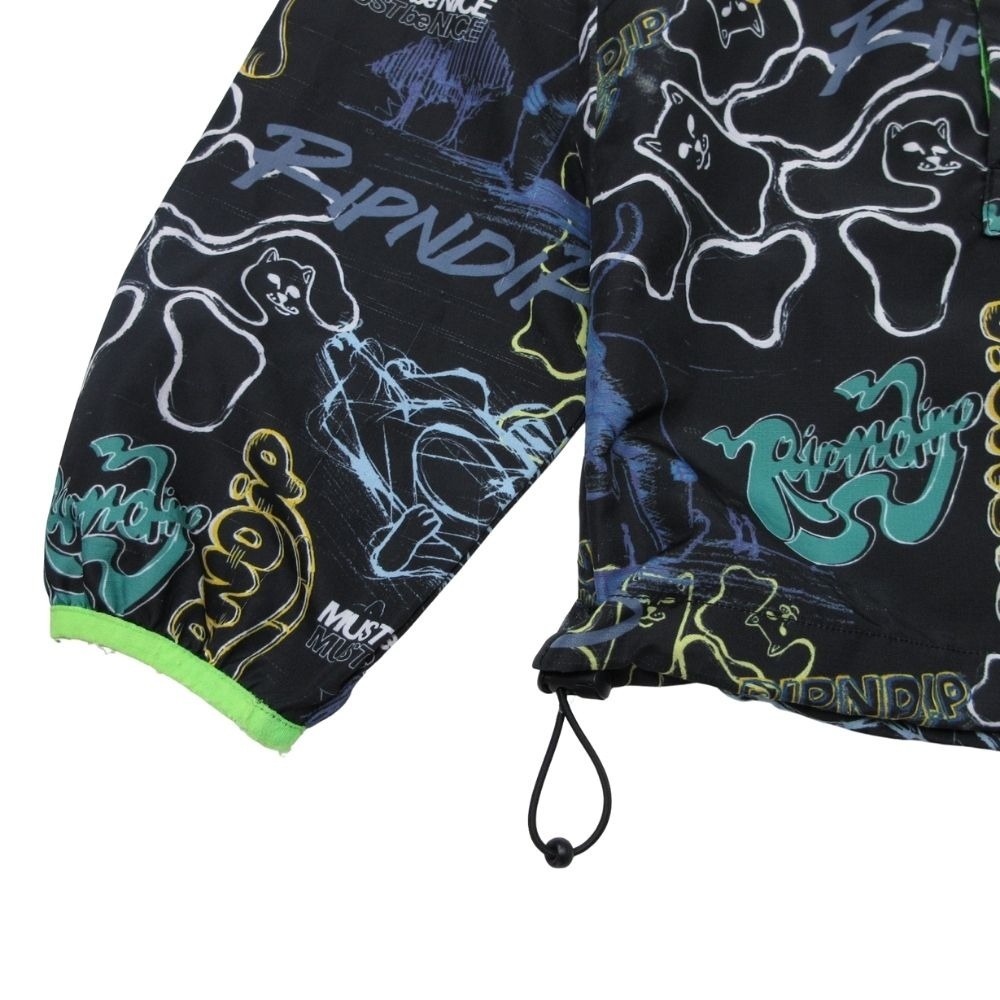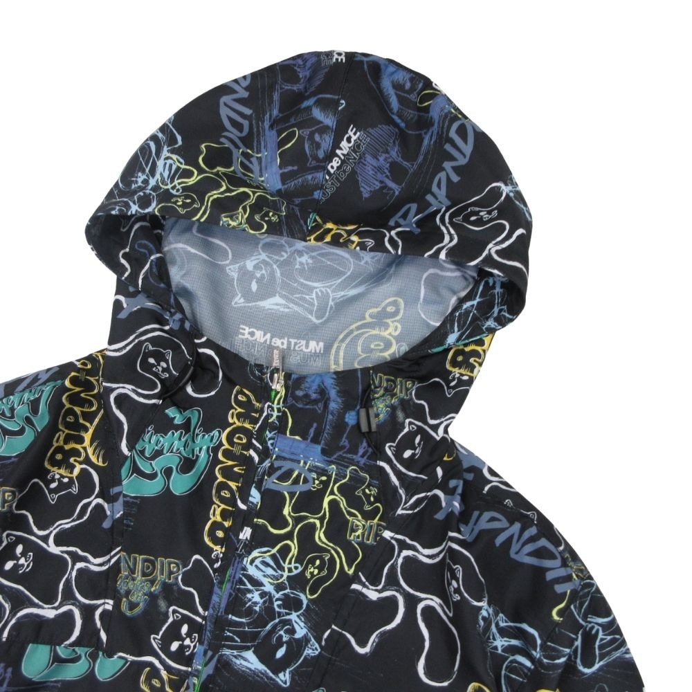 商品名:RIPNDIP リップンディップ anorak アノラック 総柄 マウンテンパーカー ナイロンジャケット ブルゾン M ブラック