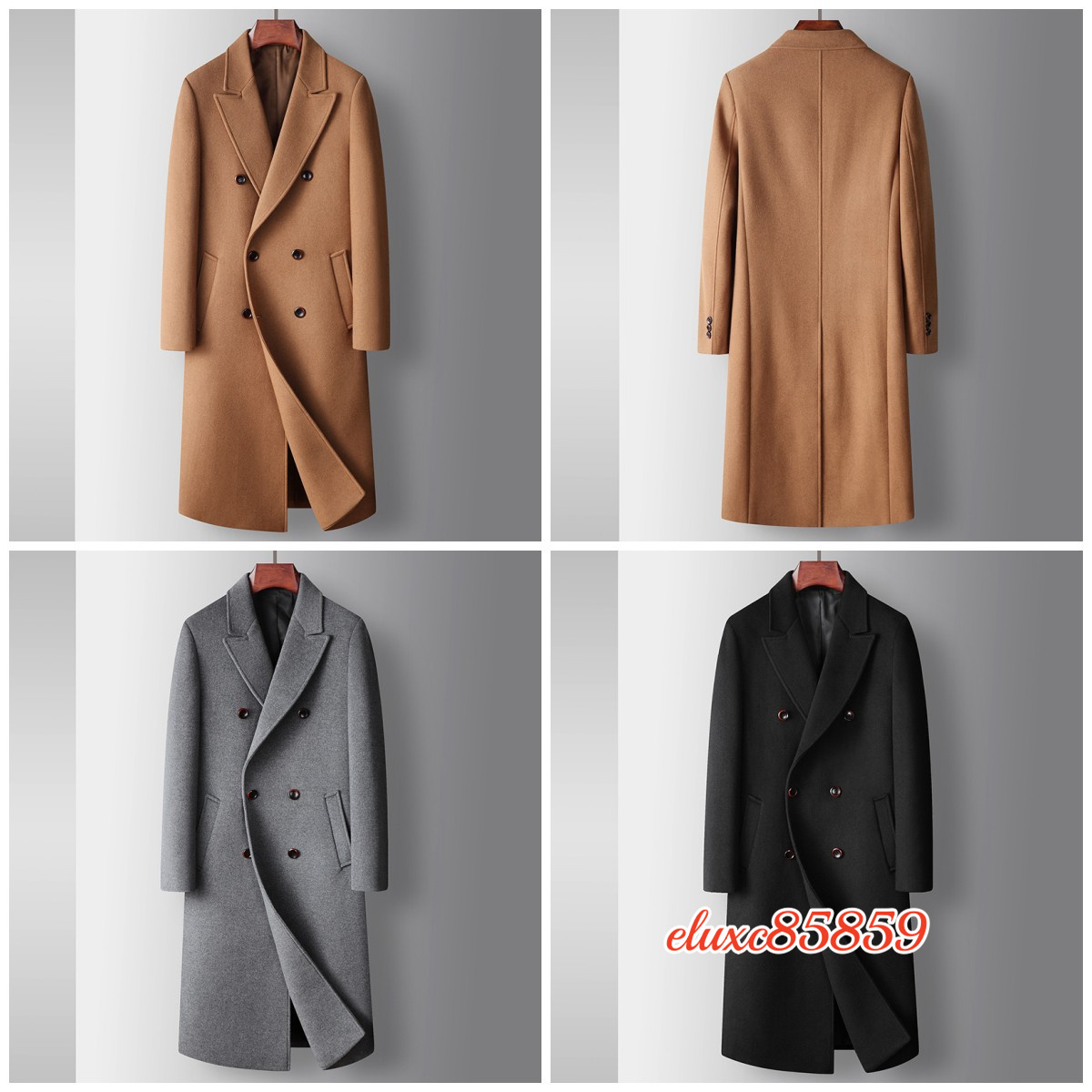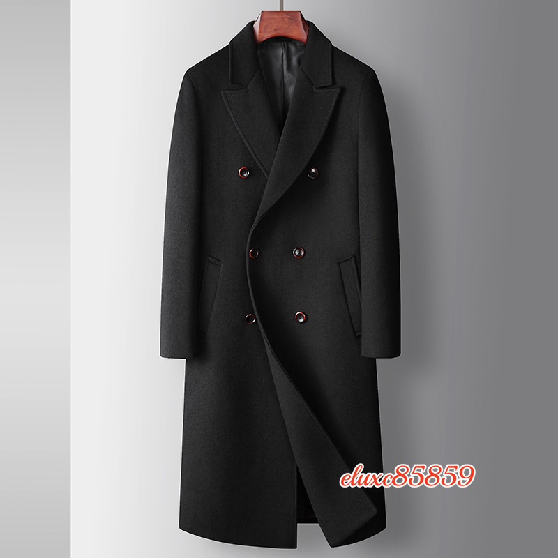 秋冬 メンズ ウールコート ロング ダブルブレスト 過膝 ビジネス 最高級 チェスターコート 防寒 モッズコート 通勤 ブラック サイズ選択可L