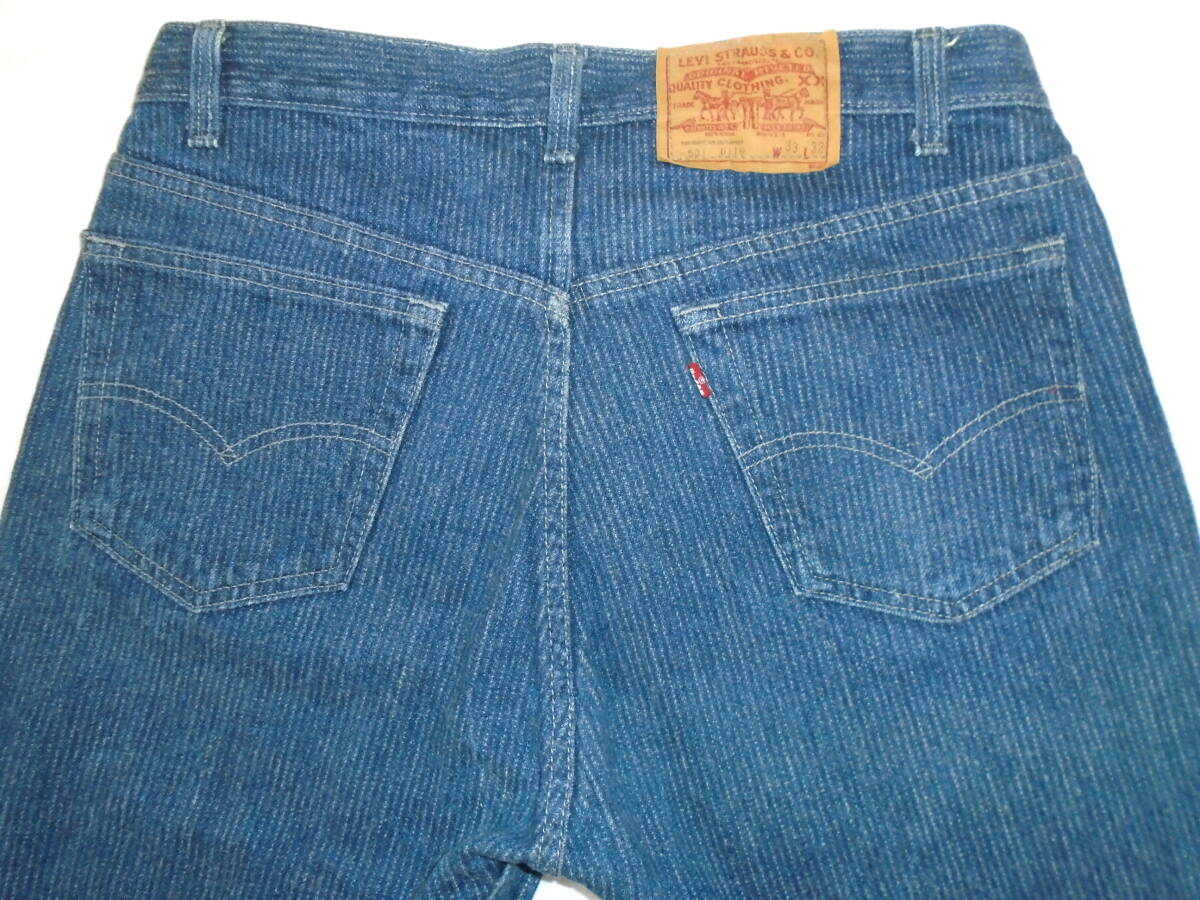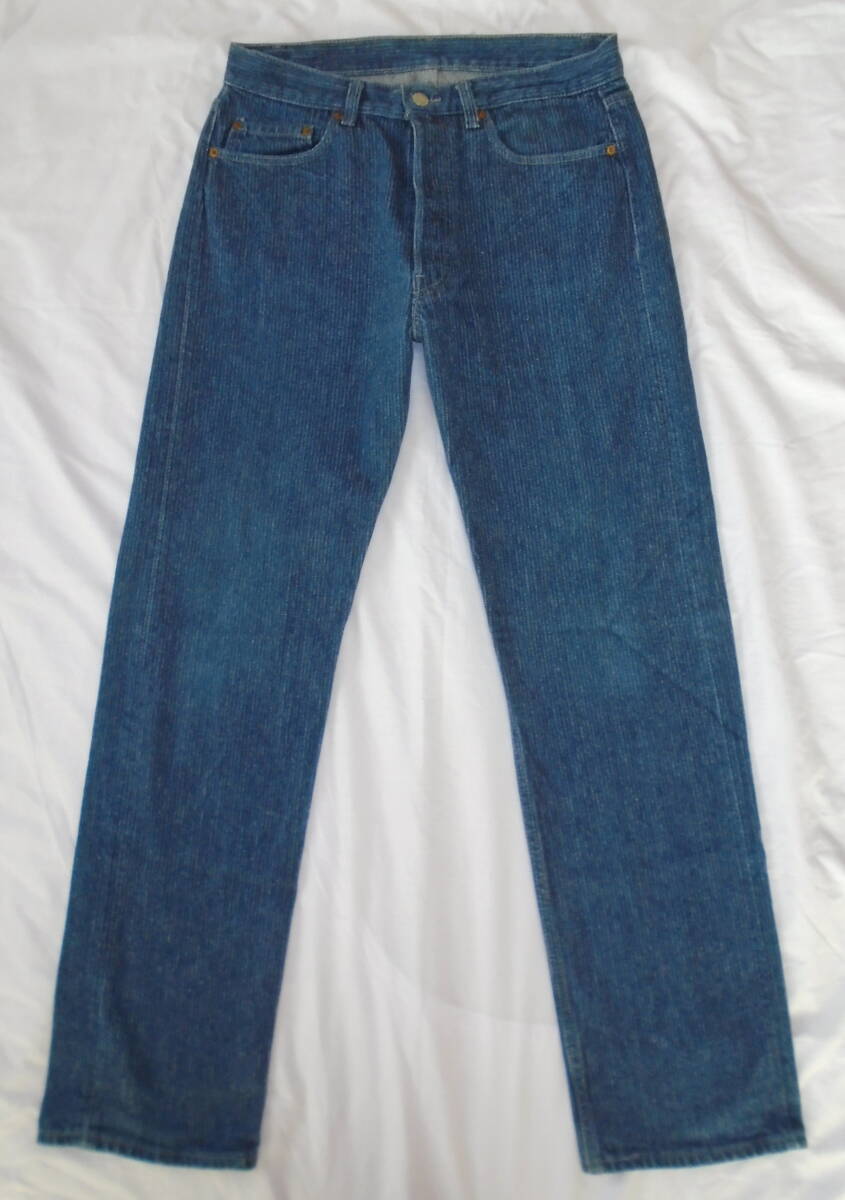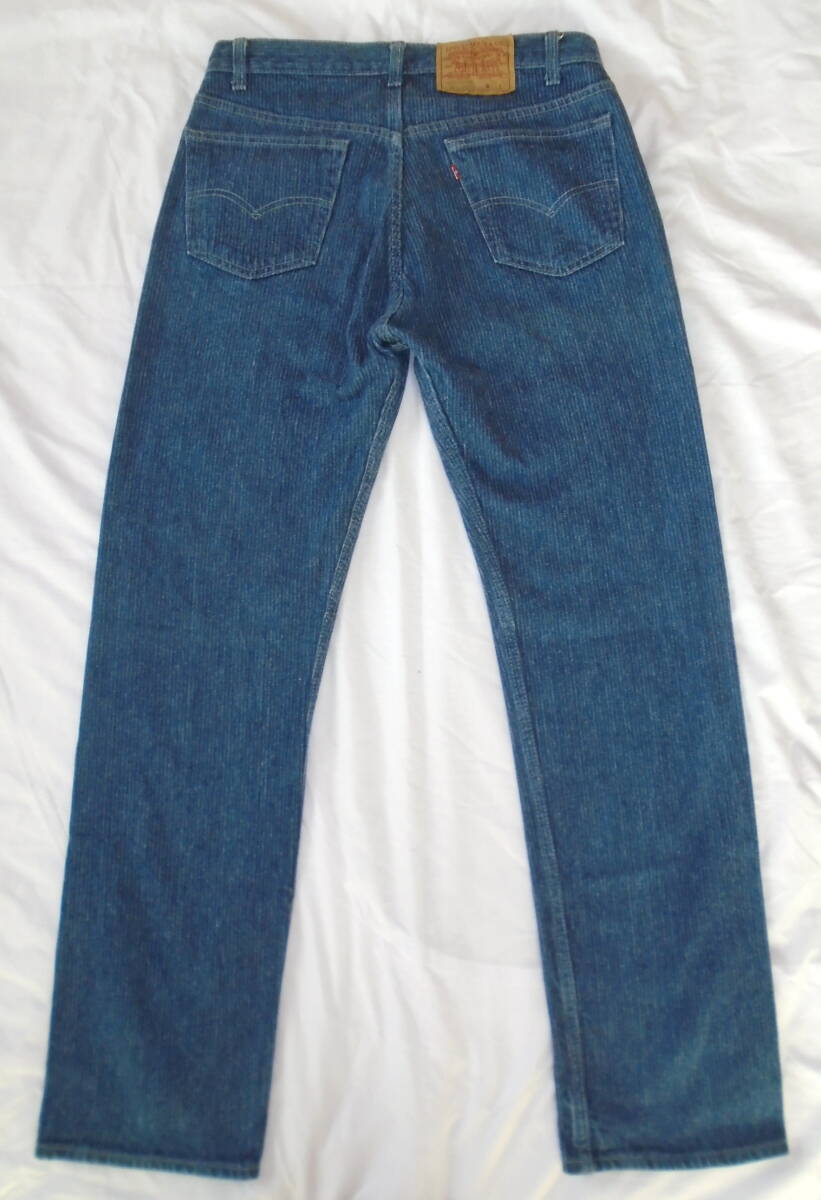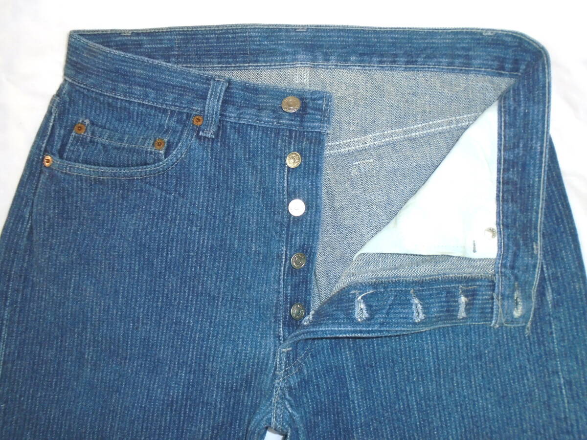Levi's 501-0119。 ヒッコリーストライプ/ピンストライプのデニム生地。 表記サイズは W:33 L:32。 実寸で ウエスト約84cm程 股下約82cm程あります ( W:33・L:32程 ) 品番がシングルの9ですので1979年製造品と思われます。 裾・クロッチ部分に生地のダメージ・汚れなし。 着用感ほぼなくミントコンディション。 米国製。 希少品。 | |||