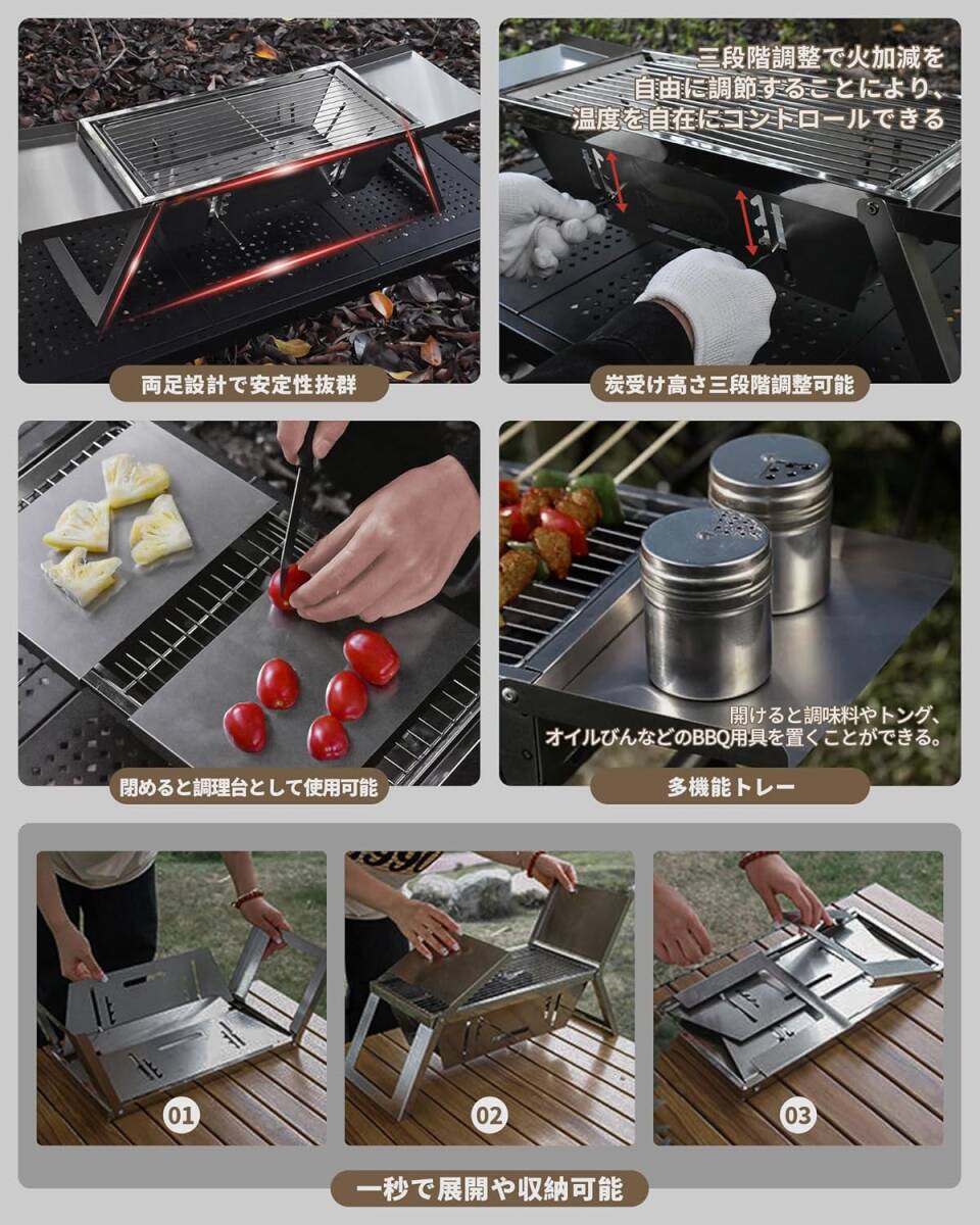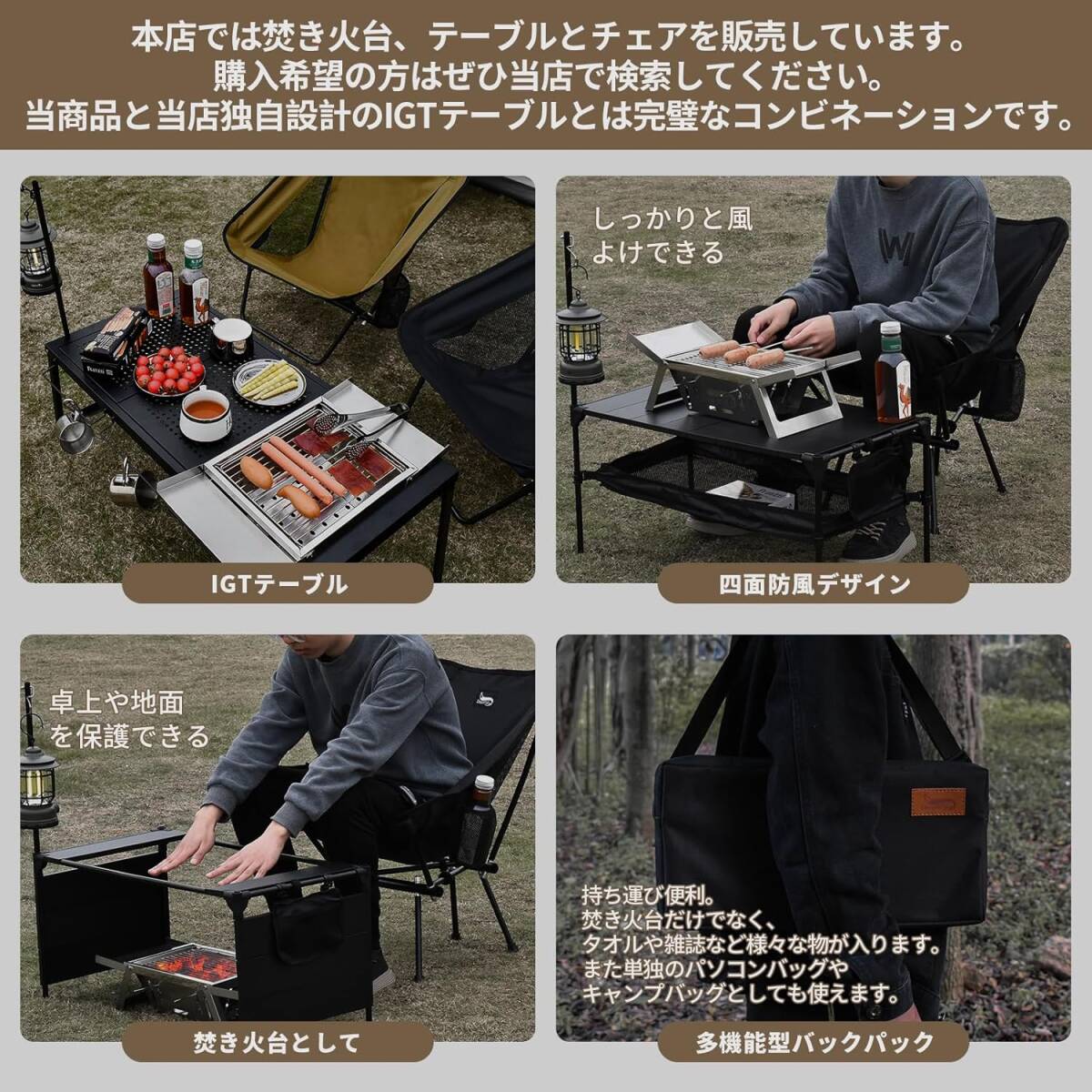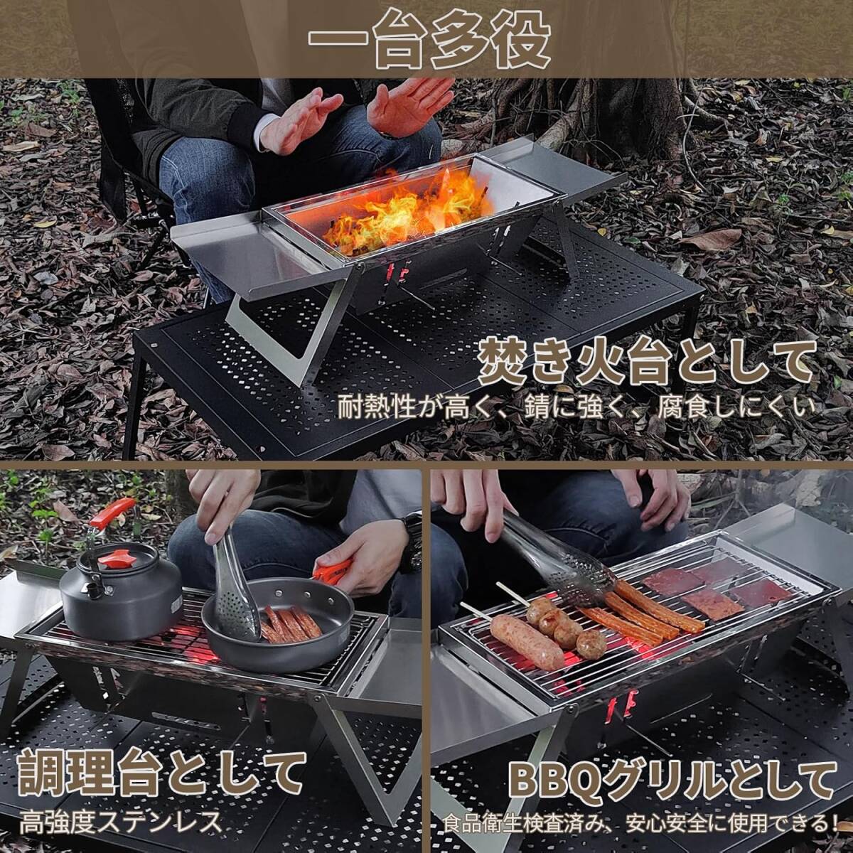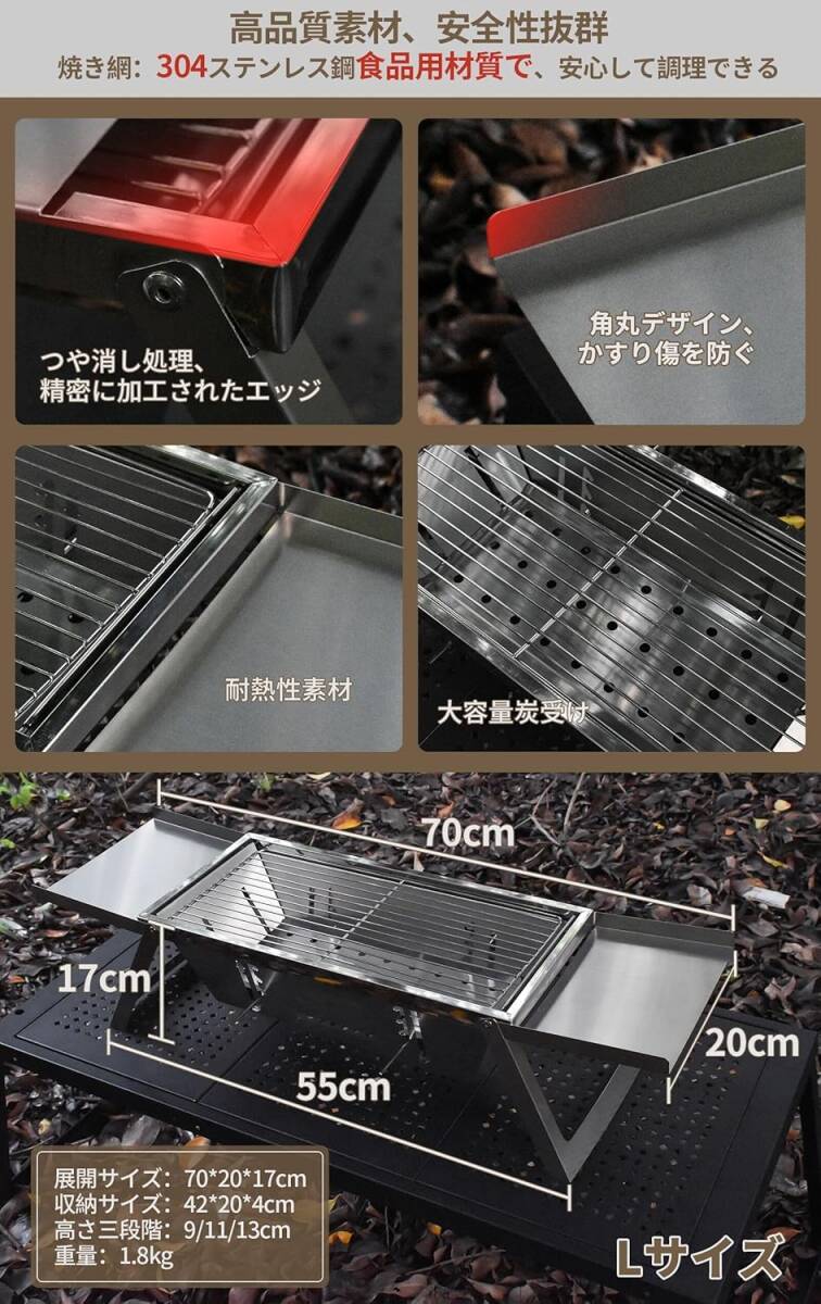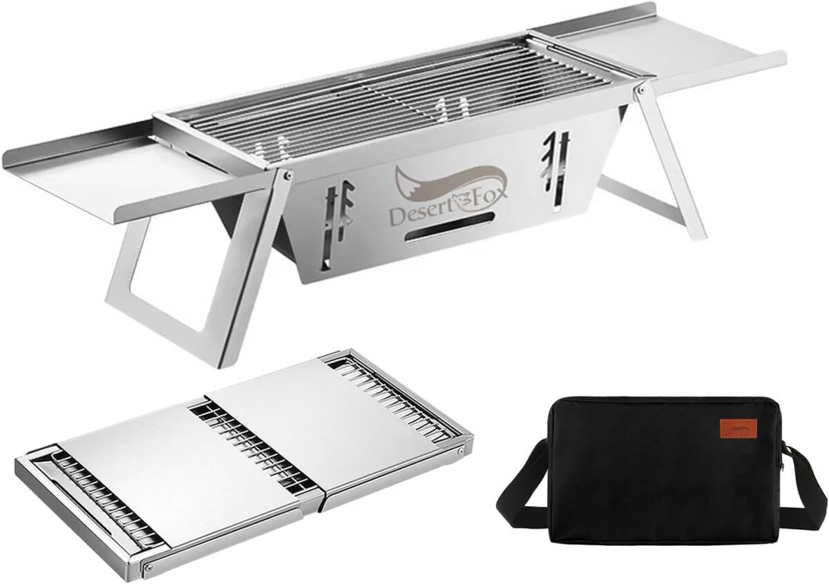 Lサイズ DesertFox 焚き火台 焚火台 バーベキュー コンロ コンパクト ステンレス製 2-4人用 70奥行き x 20幅 x 17高さ cm