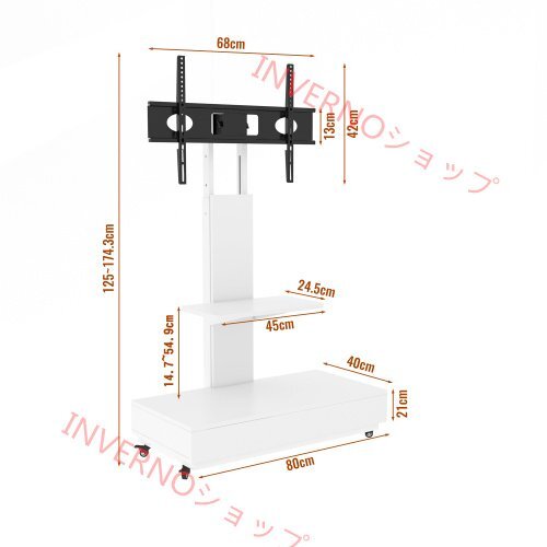 ホワイト 引き出し付きTVスタンド|32-75インチ対応 高さ調整可能|キャスター付き 可動式|リビング・寝室・オフィス用