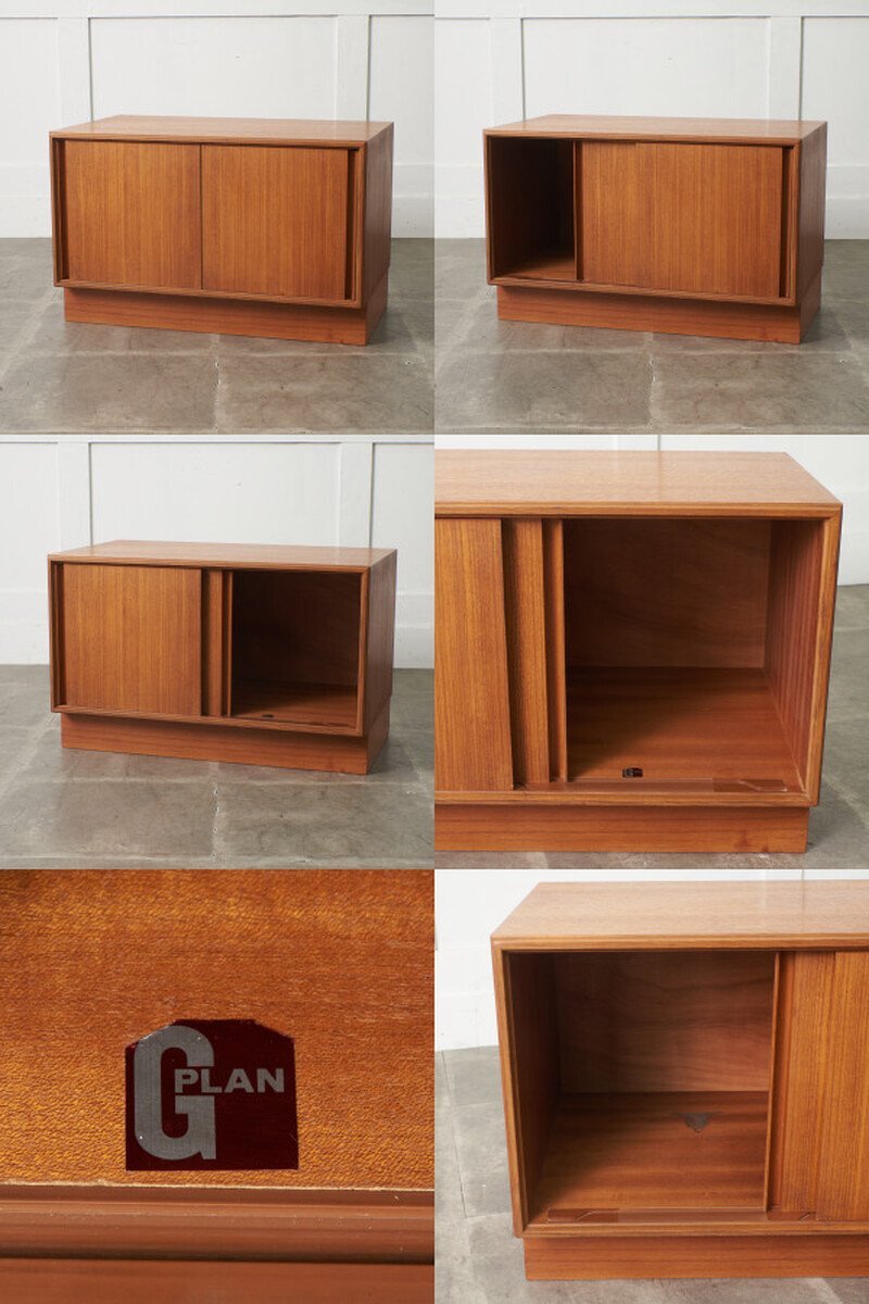 1898年創業の英国ハイ・ウィカムという町の「Ebenezer Gomme(エベネゼル・グーム)」社により 1952年に打ち出された家具ブランドです。1950年代の北欧家具ブームをイギリスで最初に取り込み1960年台にはロンドンの都市生活者の象徴と言われるほどの人気を集めました。「G」とはグーム社の頭文字、「PLAN」とはプランニング=「ライフスタイルを計画する」という商品コンセプトは単品はもちろんのこと、少しずつ買い揃えることによりトータルにモダンな部屋づくりが楽しめるという、当時としては画期的な発想でした。1987年には会社が売却され、紆余曲折を経てイングランド西部にある「G Plan Upholstery」がソファ類を、スコットランドにある「G Plan Cabinets」がキャビネットの製造を続けています。