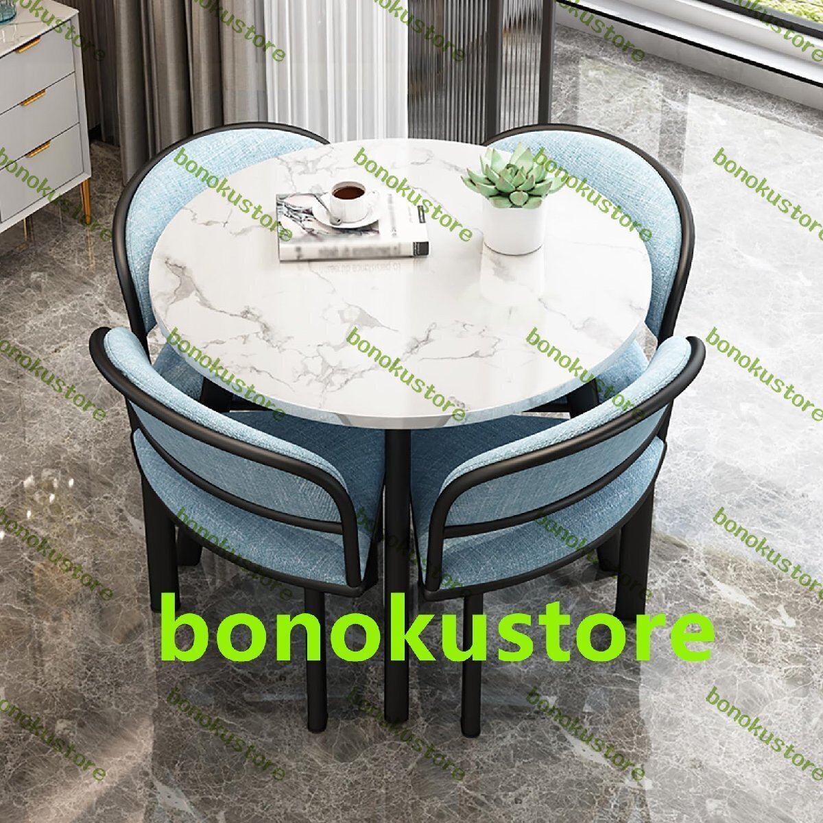 小規模オフィス用会議テーブルセット 丸テーブルと椅子付き 省スペースダイニング家具 4人用