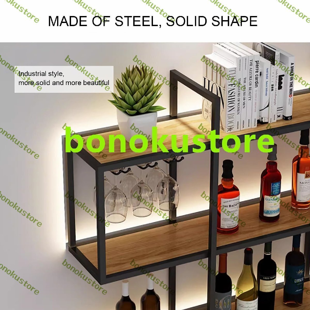 壁掛けワインラック、LEDライト付き壁掛け大型ワインラック、酒 棚壁掛け式ワインラック、工業用壁掛けワインラック、メタルワインホルダー、酒ラック壁掛け、モダンな多機能ボトルディスプレイシェルフ、壁用ワインホダー ウォールマウントワ ダイニングルームホームバーキッチン用酒 棚ガラスホルダー付き(150*20*120cm/59*7.9*47.3in)