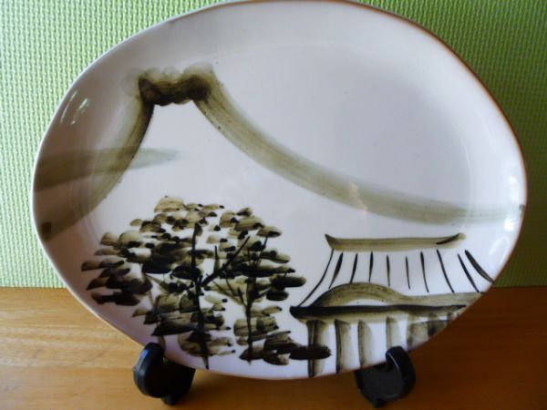 清水焼 土渕とうあん窯 レトロな楕円皿