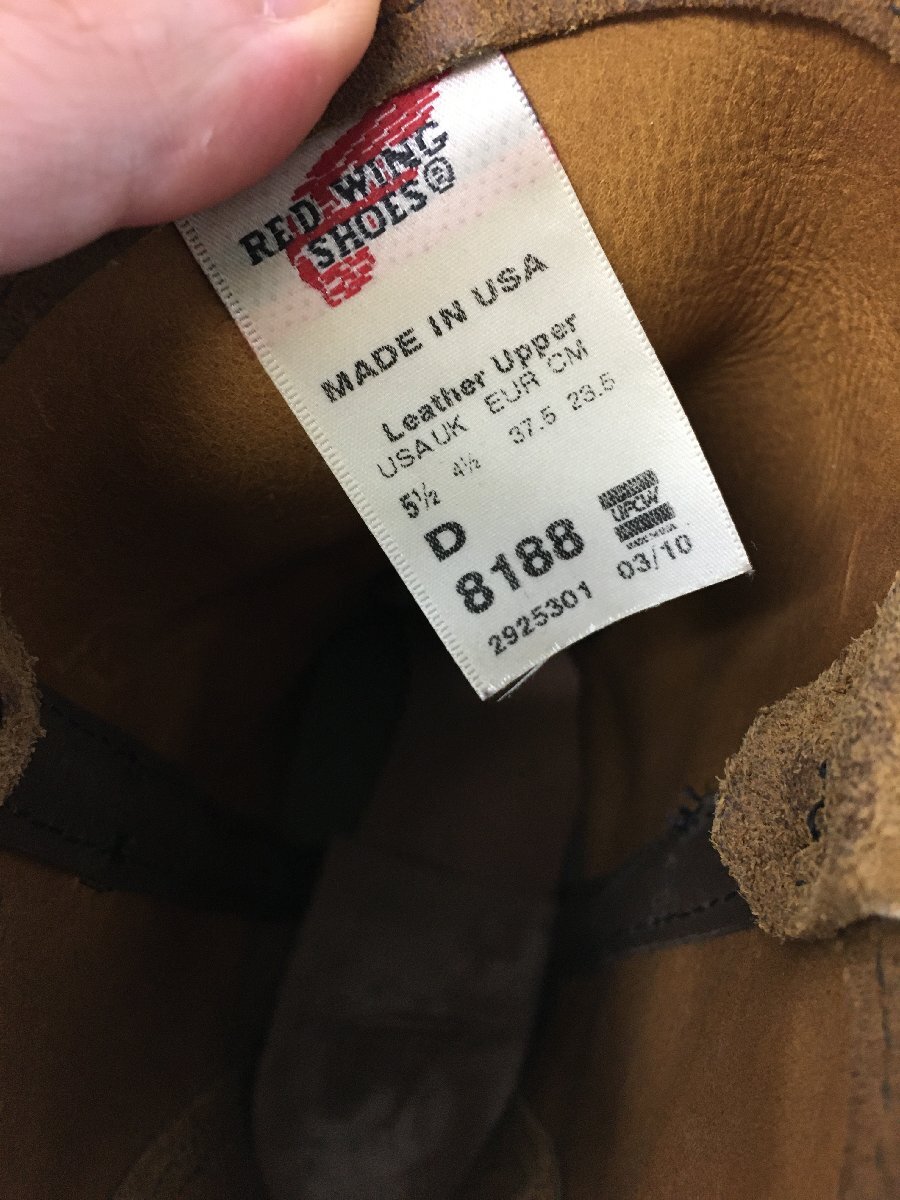 ◆レッドウィング 2010年生 8188 黒塗り替え スエード ペコス ブーツ 2010 サイズ23.5 5.5 羽タグ