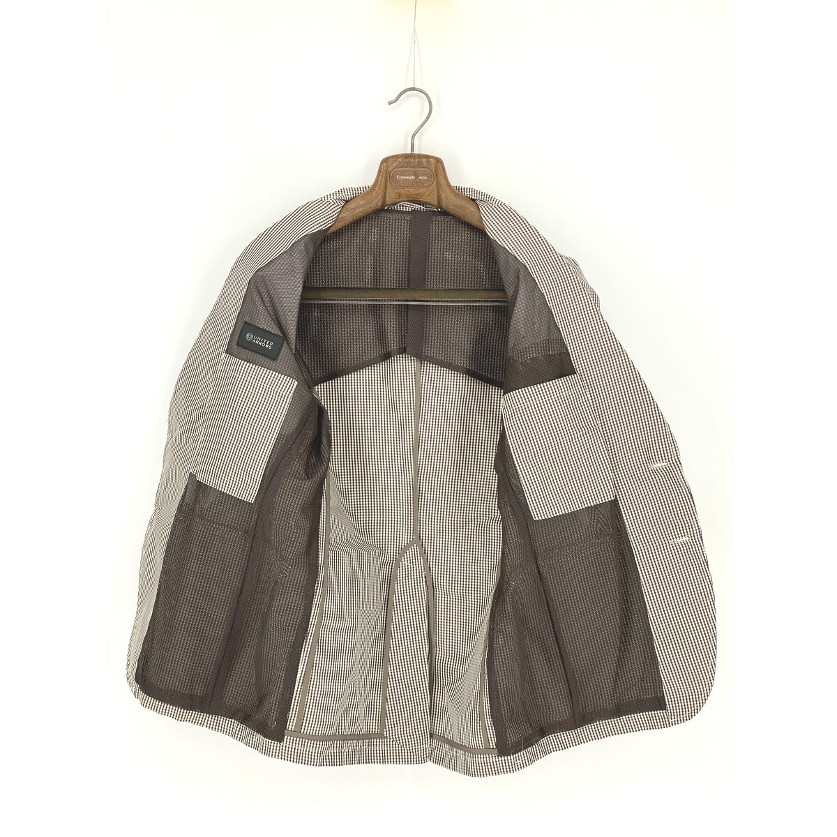 B0573/背抜き UNITED ARROWS ユナイテッドアローズ シルク チェック 裏メッシュ テーラード シングル2Bアンコンジャケット S 茶 メンズ