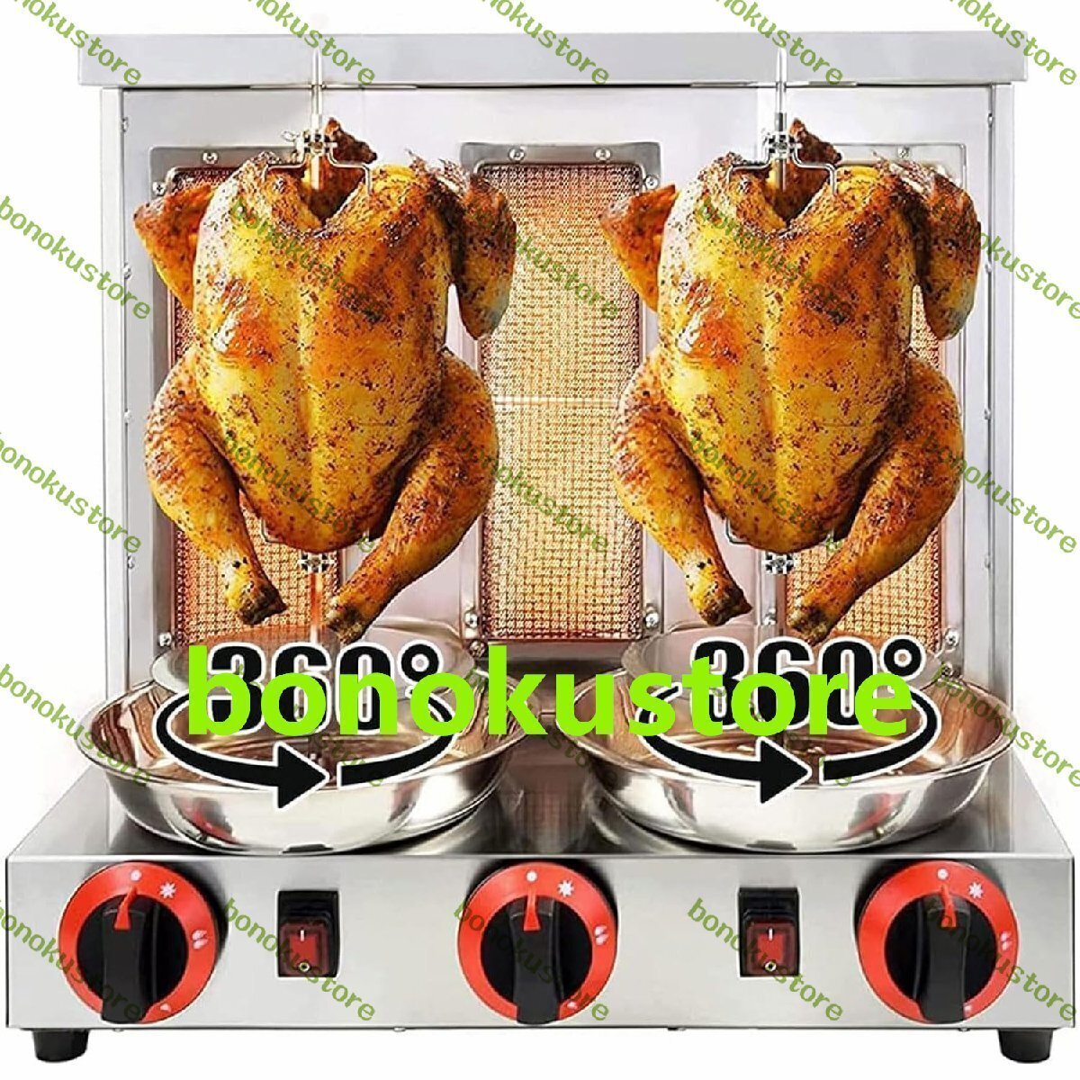 商業ガスグリル、ステンレス鋼垂直ジャイロガスグリルロティサリーマシン、360度回転加熱、2列の冷却穴、レストラン、スナックバー、家族の集まり用
