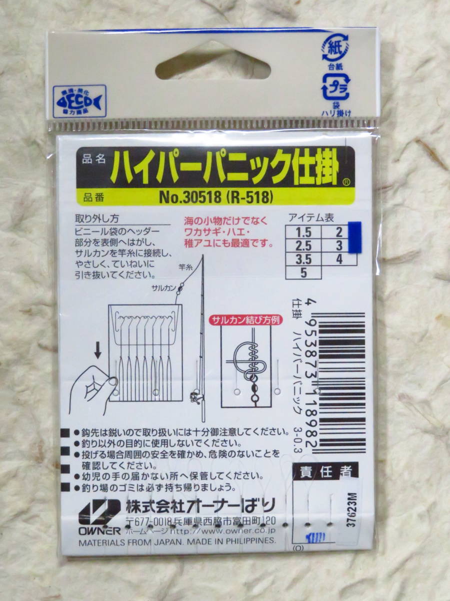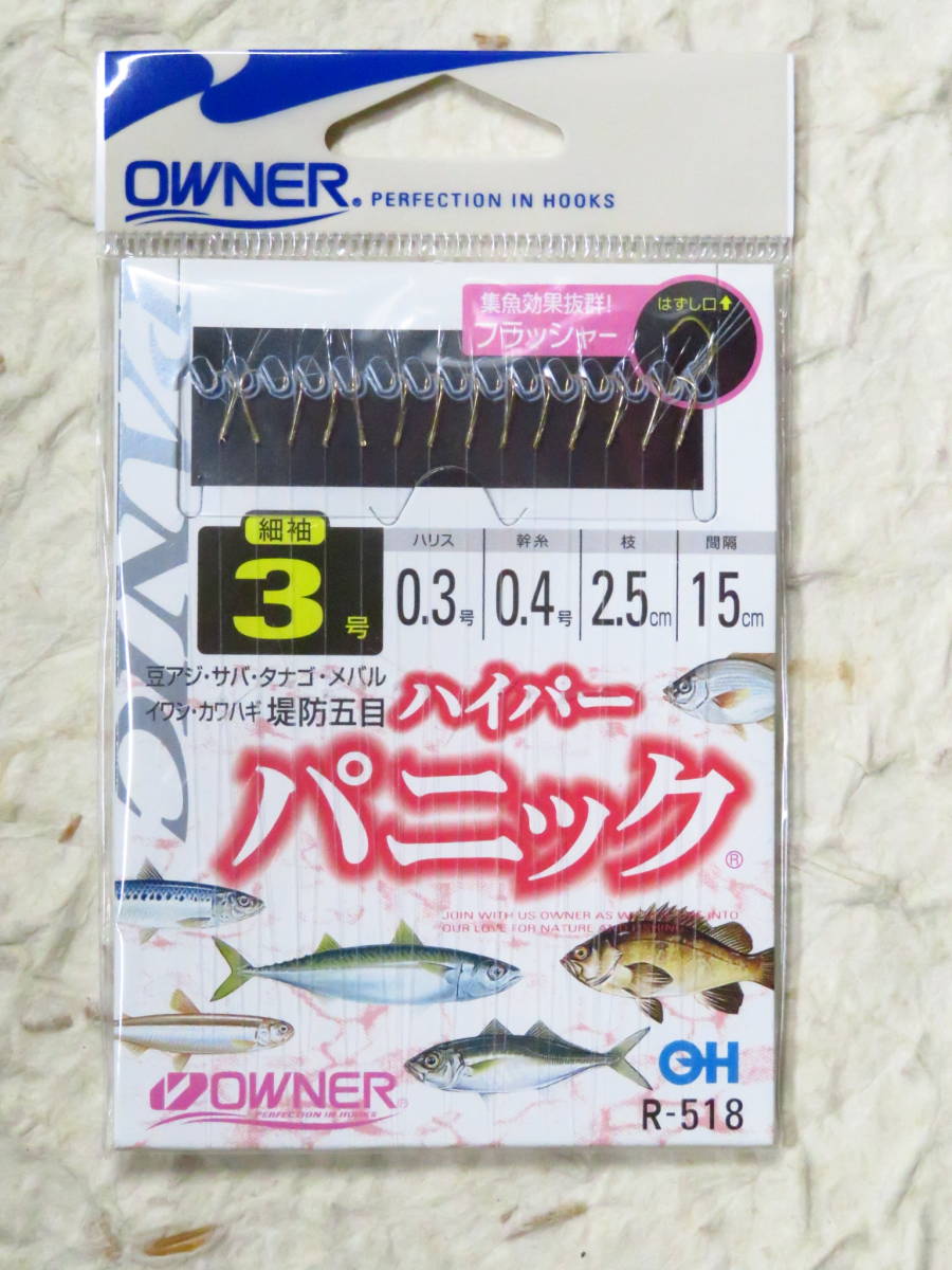 オーナー ハイパーパニック 3号 5枚セット R‐518  堤防五目 豆アジ サバ タナゴ メバル イワシ カワハギ